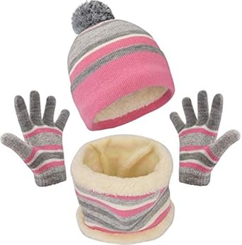 MAYLISACC Winter Kids Hat Scarf and Gloves 3Pcs Set for Boys and Girls Toddler Age 3-6, Striped Pom Beanie Glove Neck Warmer