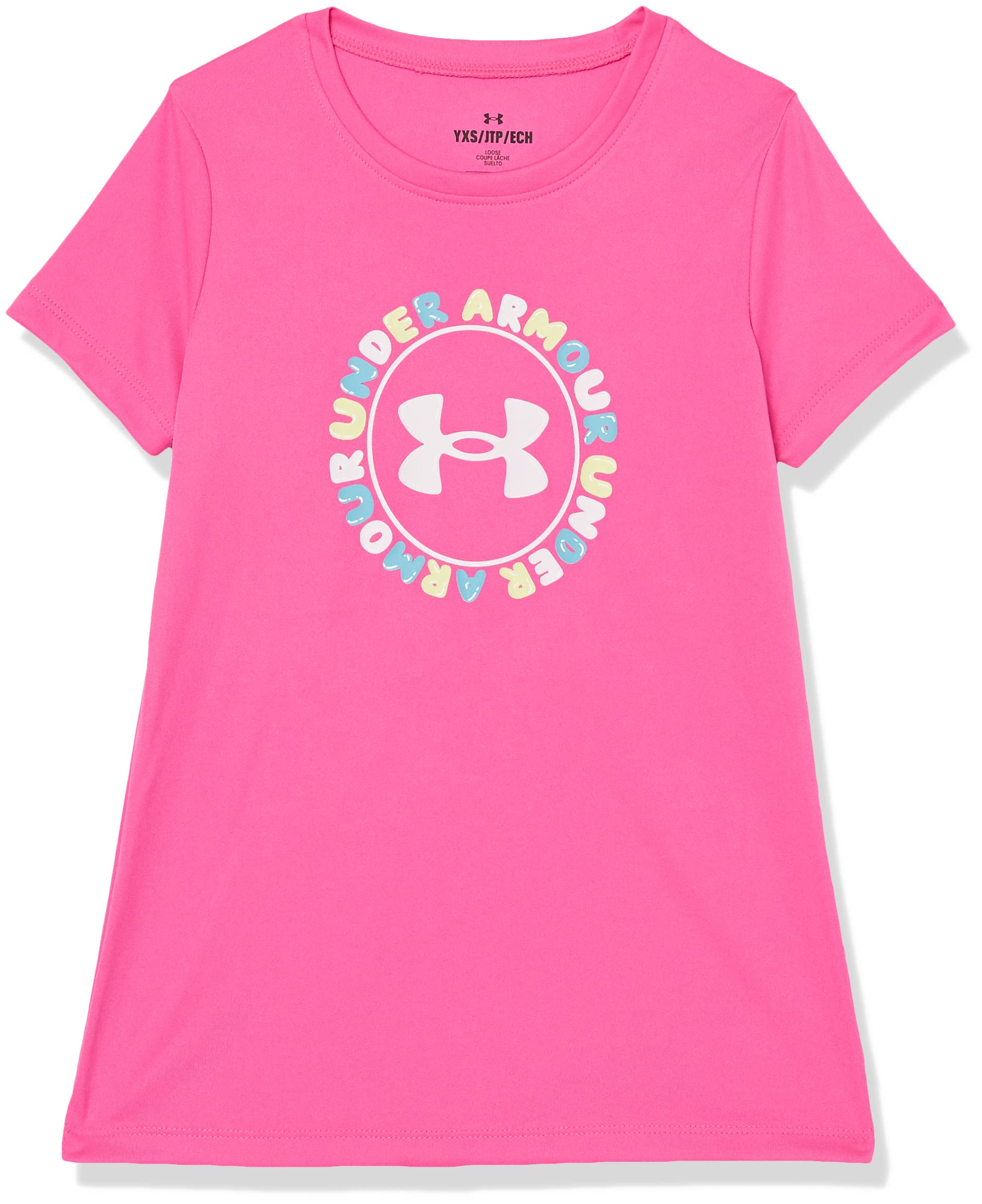 Under Armour Girls' Tech Twist Workmark Short Sleeve Crew, (652) Rebel Pink/Fade/Glacier Blue, Youth X-Large