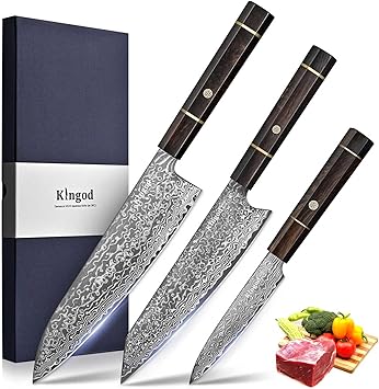 KINGOD Chef Knives VG10 Steel Core Kitchen Knife Set 3 PCS Japanese Knife Professional Cooking Knife Set Full Tang Rosewood Handle Elegant Gift Box for Home or Restaurant