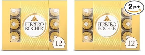 Ferrero Rocher, 12 Count, Premium Gourmet Milk Chocolate Hazelnut, Individually Wrapped Candy for Gifting, Great Easter Gift, 5.3 oz (Pack of 2)
