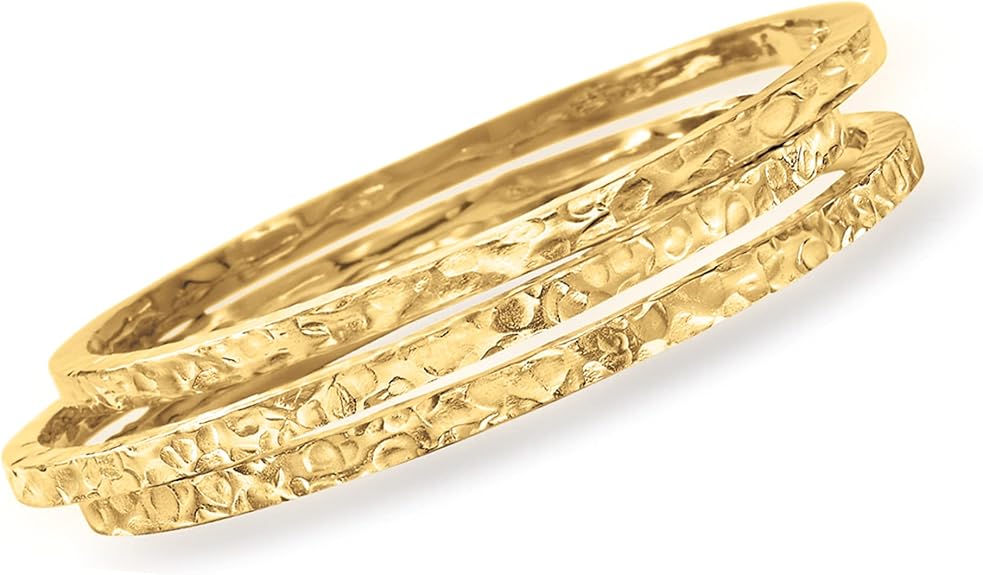 Ross-Simons Italian 18kt Gold Over Sterling Jewelry Set: 3 Hammered Bangle Bracelets. 8.5 inches