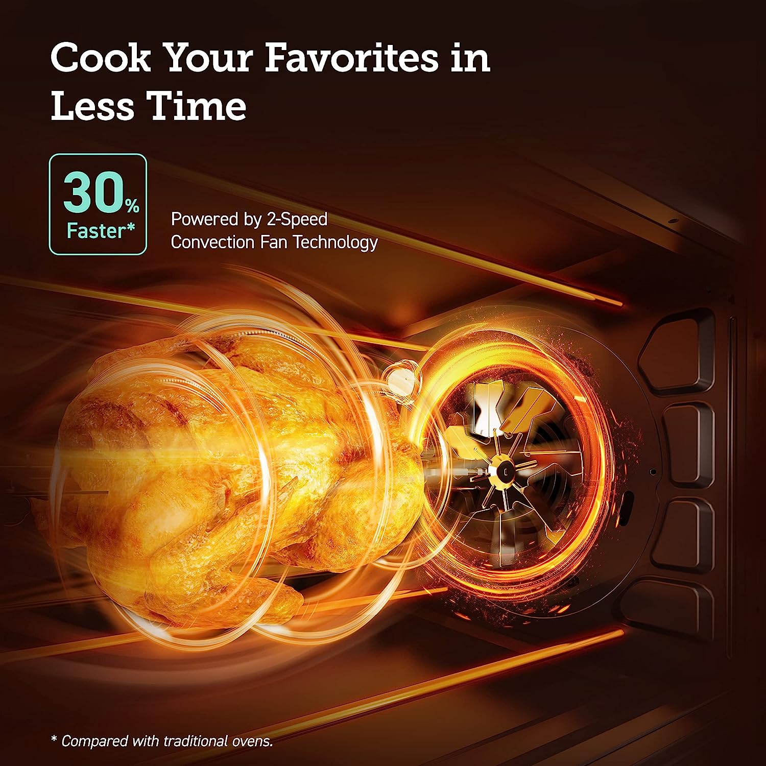 • CONVECTION FUNCTION: Reduce your cooking time by using the Smart Air Fryer Toaster Oven. Use the convection fan for fast and even cooking—especially if you like crispy results. This function is perfect for a rotisserie chicken