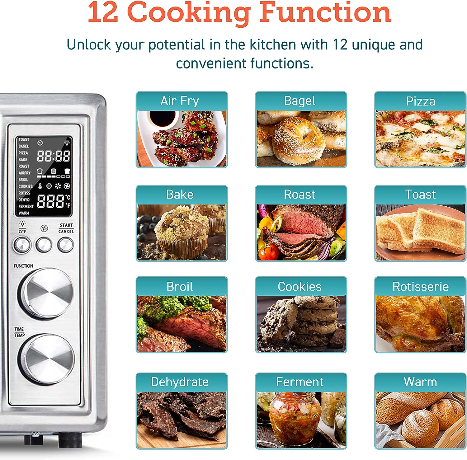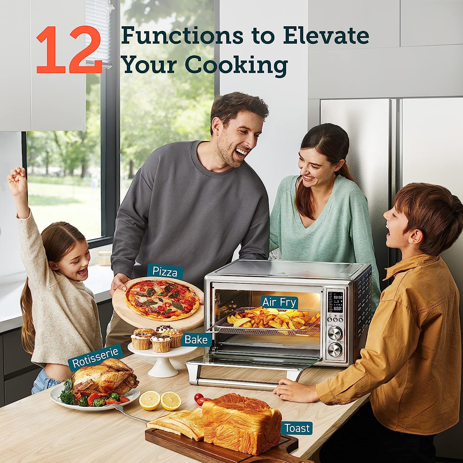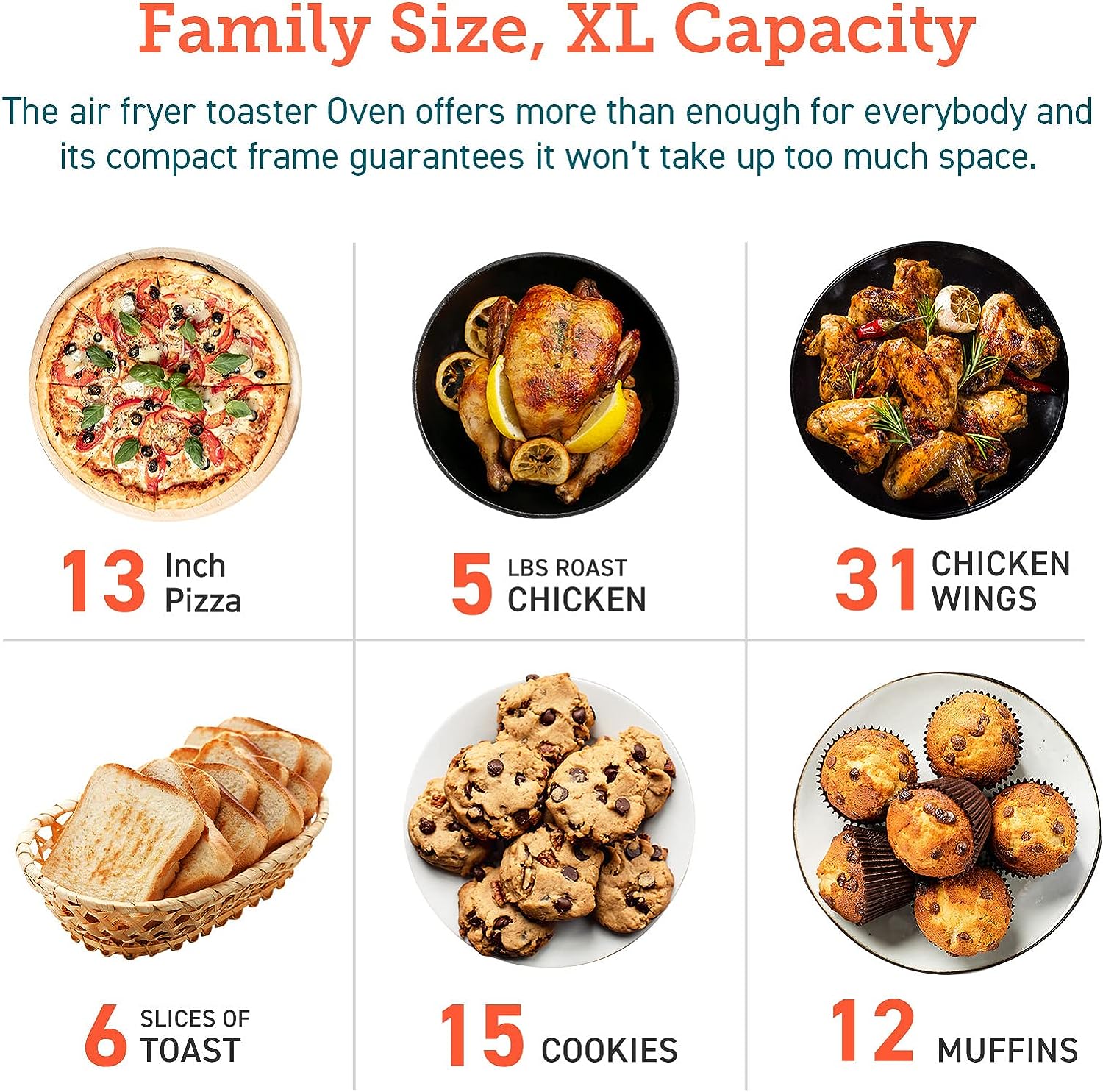• LARGE CAPACITY: Cook for 5-7 people with the 32-quart/30-litre air fryer toaster oven, which can fit a 13-inch pizza, 6 slices of bread, or an entire rotisserie chicken