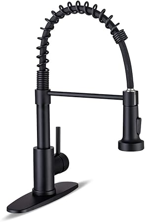 WEWE Kitchen Faucets with Pull Down Sprayer Commercial Industrial Stainless Steel Single Handle Single Hole Spring Farmhouse RV Sink Faucet, Matte Black Kitchen Faucet for Laundry Utility Room Sink