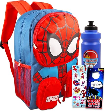 Marvel Spiderman 16" Backpack for Boys Set - Bundle, Stickers, Water Bottle, More for Boys 4-6