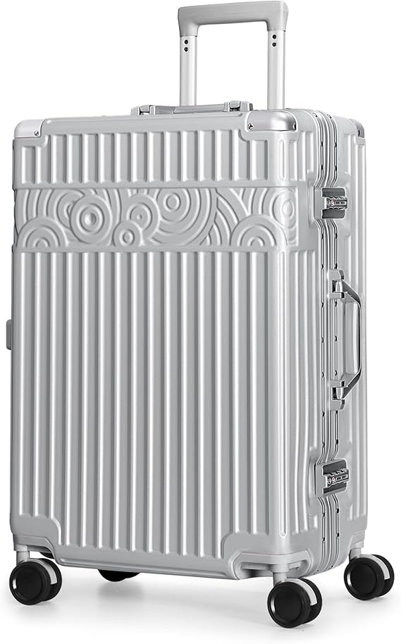 Krute Luggage with Spinner Wheels, 24inch Checked Luggage Zipperless PC+ABS Suitcase with TSA Lock with Aluminum Frame Silver