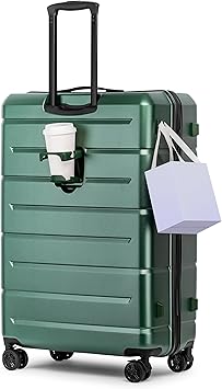 KYME Hardside Checked 30 Inch Luggage with Double Spinner Wheels, Hard Shell Large Suitcase with TSA Lock Cup Holder for Men Women, Green