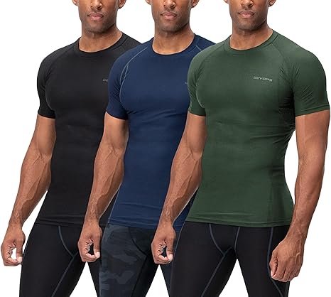 DEVOPS 3 Pack Men's Cool Dry Short Sleeve Compression Shirts, Sports Baselayer T-Shirts Tops, Athletic Workout Shirt