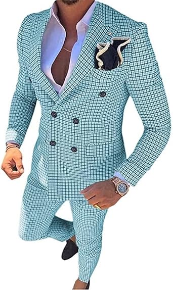 Mens Plaid Slim Fit 2 Pieces Suit Casual Notched Lapel Blazer Tuxedo Sport Coat Trousers
