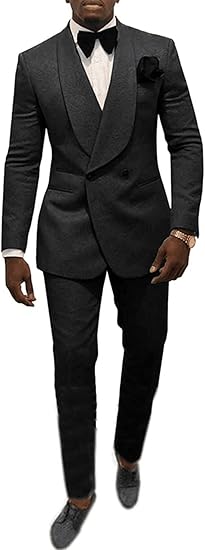 Mens Suit Jacquard Groom Tuxedos Shawl Lapel Suits Slim Fit 2 Pieces Two Buttons Jacket