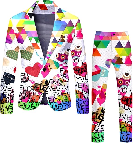 Men's Valentine's Day Slim Fit Suit 2 Piece One Button Jackets Pants Funny Printed Tuxedo Suits Sets