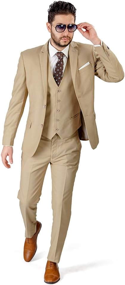 Slim Fit Men Suit Tan Beige 2 Button Notch Lapel AZAR 4030-10