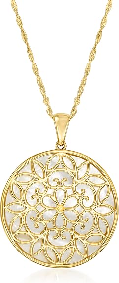 Ross-Simons Mother-Of-Pearl Floral Pendant Necklace in 18kt Gold Over Sterling. 18 inches