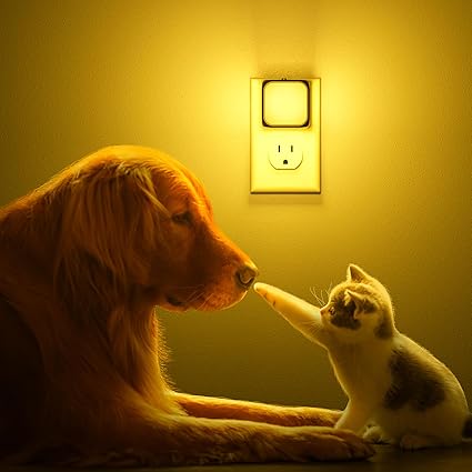 KINDEEP LED Bathroom Night Lights Plug into Wall 2 Pack, Dusk to Dawn Sensor Dimmable Yellow Light Nightlights Auto-On/Off for Kids Room, Stair Lights, Hallway, Bedroom Adjustable Brightness Light