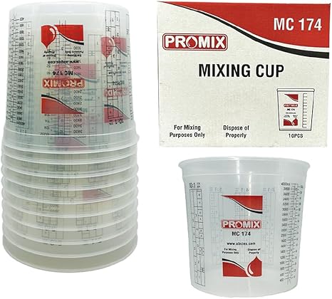 Paint & Epoxy Mixing Cups Buckets - Pack of 10-174 Ounce (5-Quart) - Calibrated Mixing ratios on Side - Solvent Resistant, Reusable Clear Plastic Cups for Paint, Epoxy, Resin, Oil, Thinner