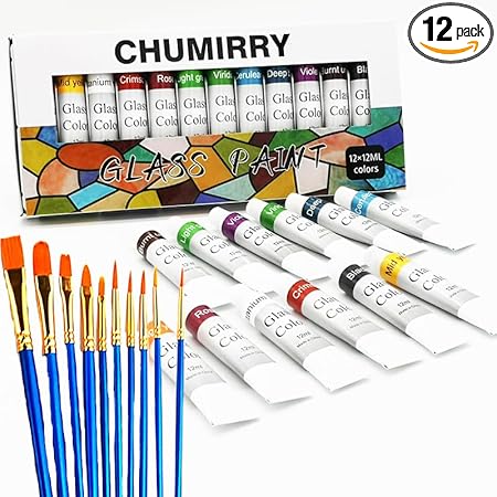 Stain Glass Paint, Non-Toxic Window Paint, Permanent Glass Paint Kit, Lacquer Based for Superior Stained Glass Art Paint, Glass Painting with 10Pieces Round Pointed Tip Nylon Hair Brush