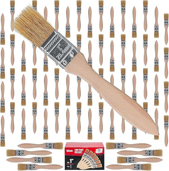 U.S. Art Supply 72 Pack of 1 inch Paint and Chip Paint Brushes for Paint, Stains, Varnishes, Glues, and Gesso