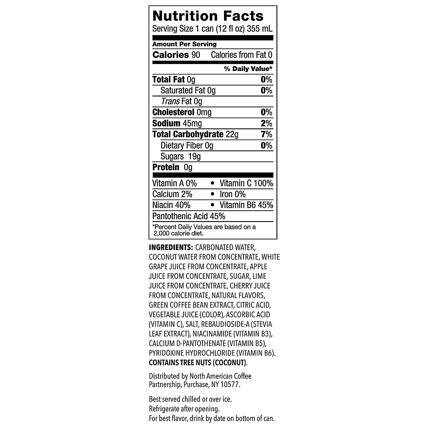 • Made with a blend of feel good ingredients like real fruit juice, cool coconut water, B vitamins, and caffeine from green coffee extract