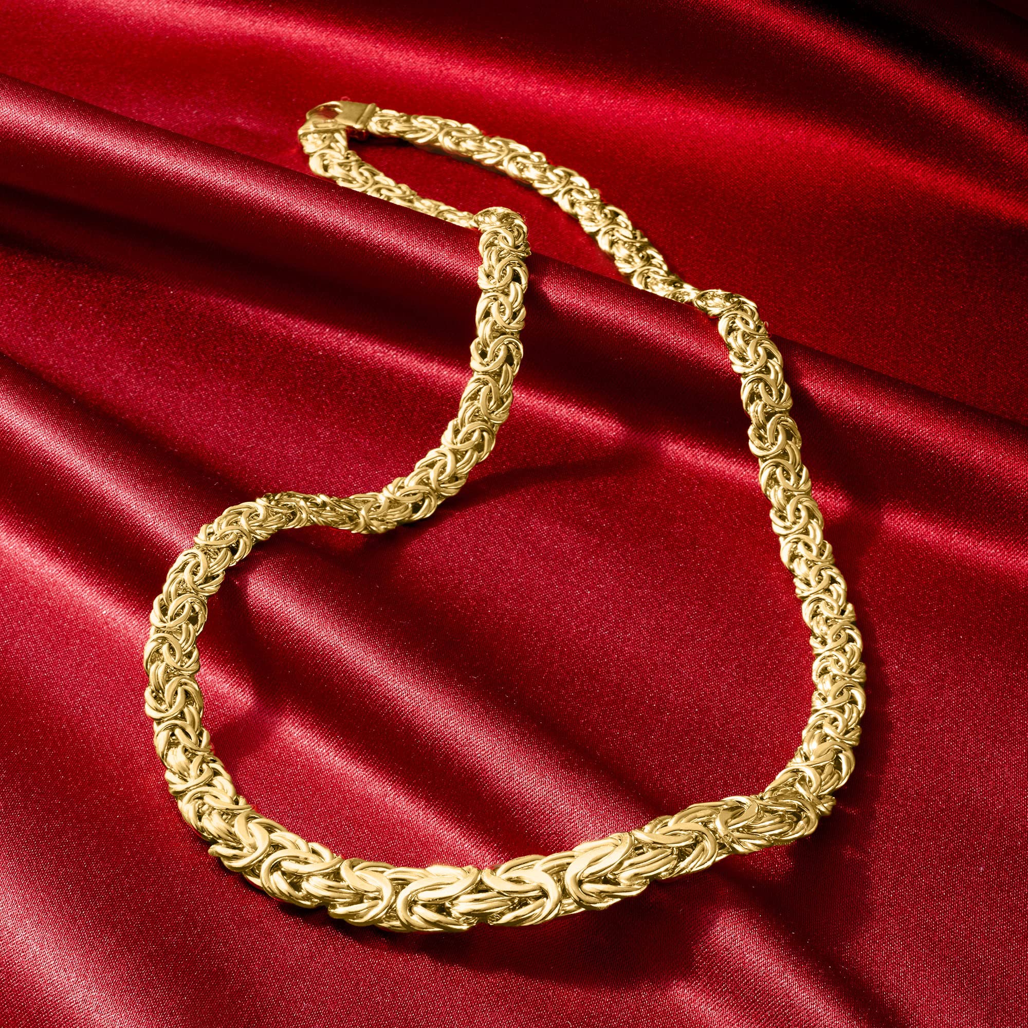 Details: A trusted jeweler in 1952, Ross-Simons is dedicated to quality and value. This graduated Byzantine necklace is a classic handcrafted style. Each chain passes through four others to create the signature Byzantine look. The multi-dimensional 14kt gold links are polished to a smooth, glossy finish. Graduates from 1/4" to 1/2" wide. Lobster clasp, 14kt yellow gold Byzantine necklace Each Ross-Simons item arrives in a fine jewelry presentation box.