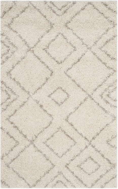 SAFAVIEH Arizona Shag Collection Area Rug - 8' x 10', Ivory & Beige, Moroccan Diamond Design, Non-Shedding & Easy Care, 1.6-inch Thick Ideal for High Traffic Areas in Living Room, Bedroom (ASG744A)