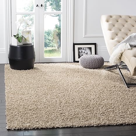 SAFAVIEH Athens Shag Collection Area Rug - 8' x 10', Beige, Non-Shedding & Easy Care, 1.5-inch Thick Ideal for High Traffic Areas in Living Room, Bedroom (SGA119G)