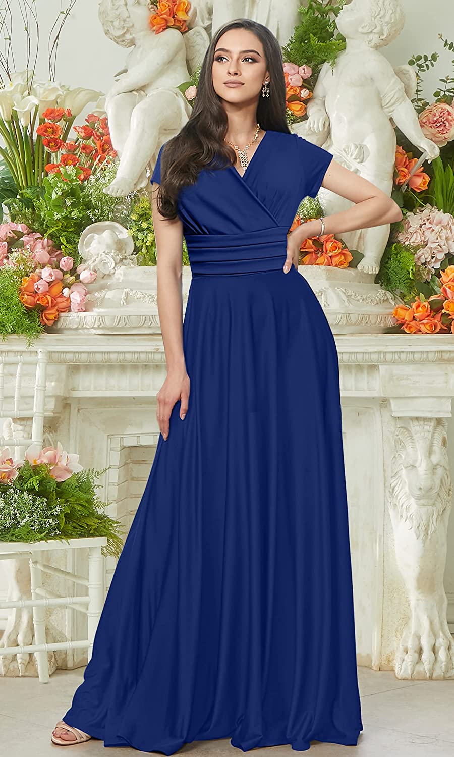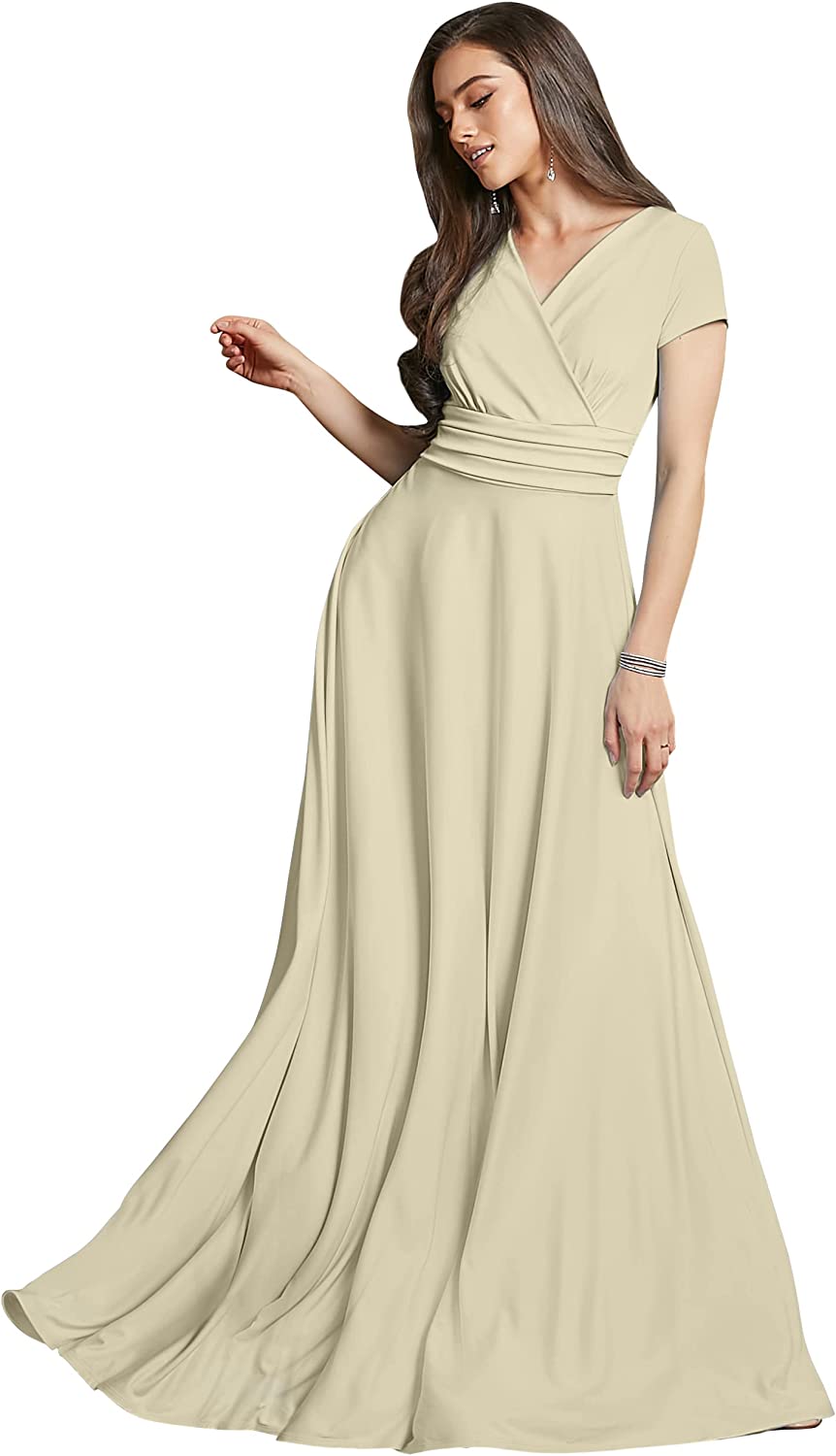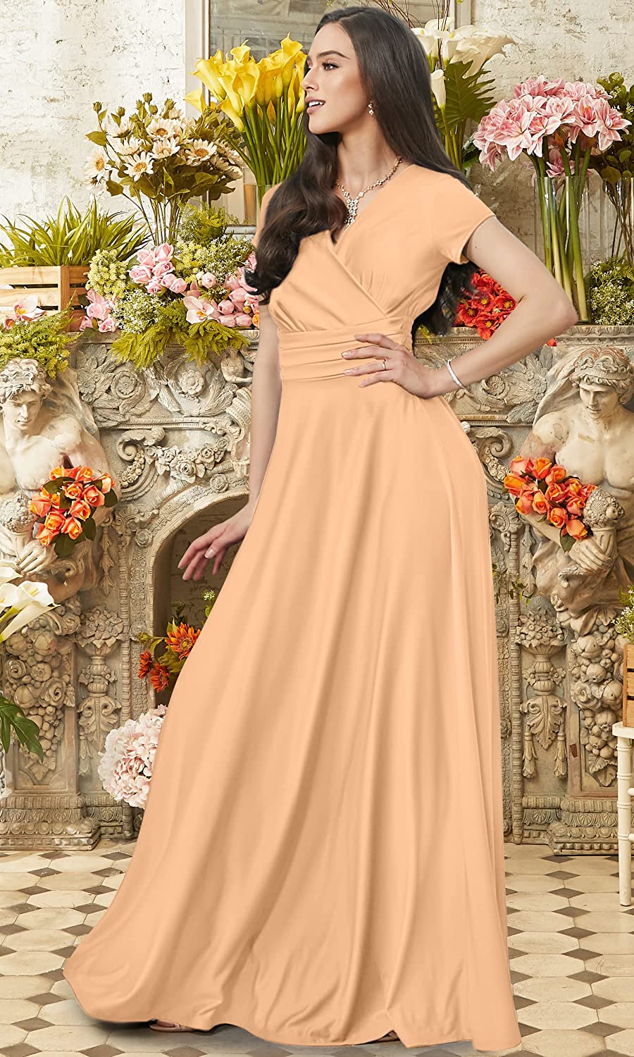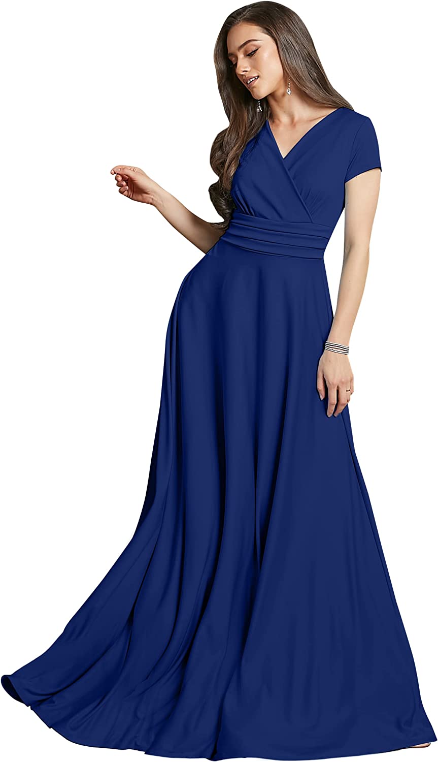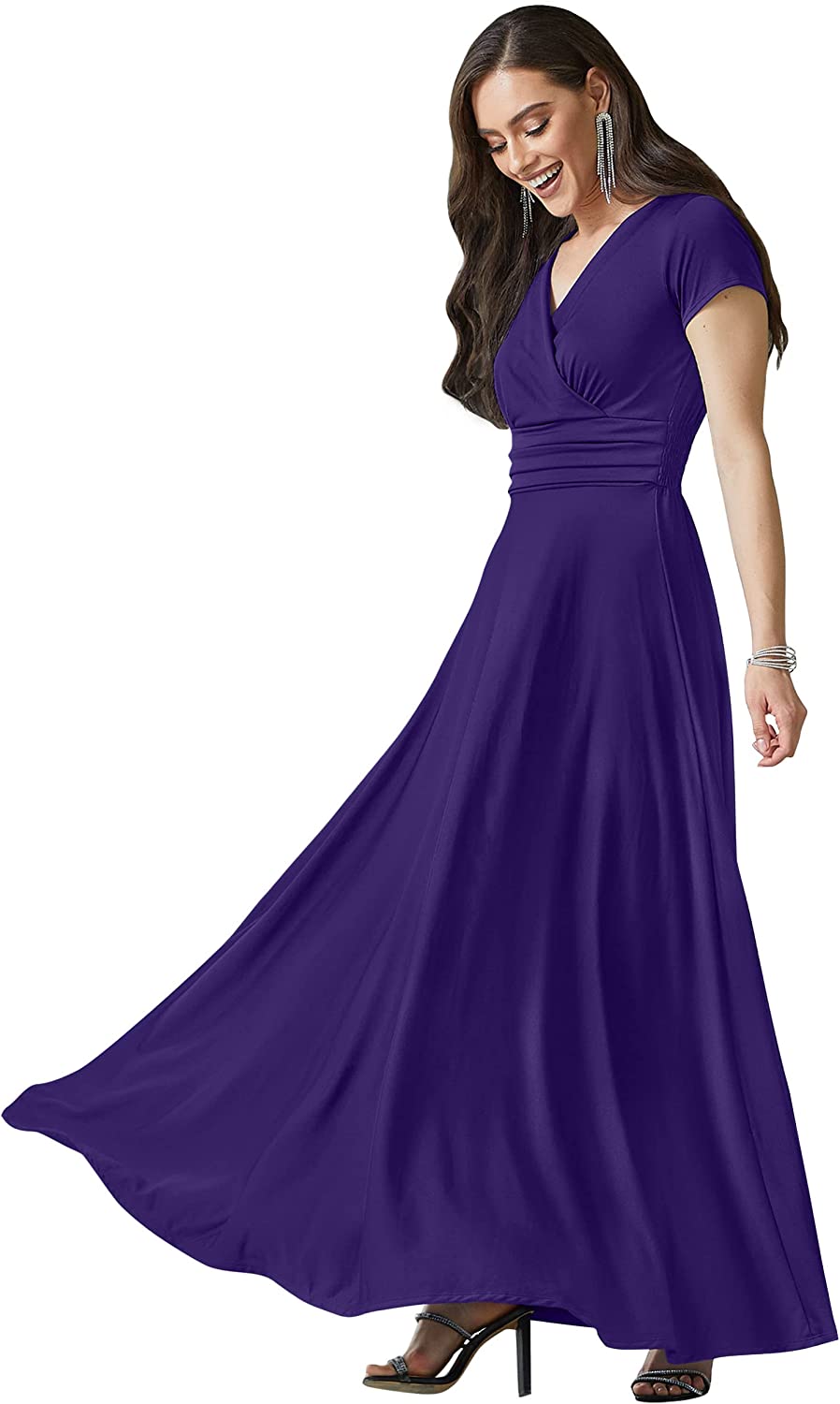 KOH KOH Womens Sexy Cap Short Sleeve V-Neck Flowy Cocktail Gown
