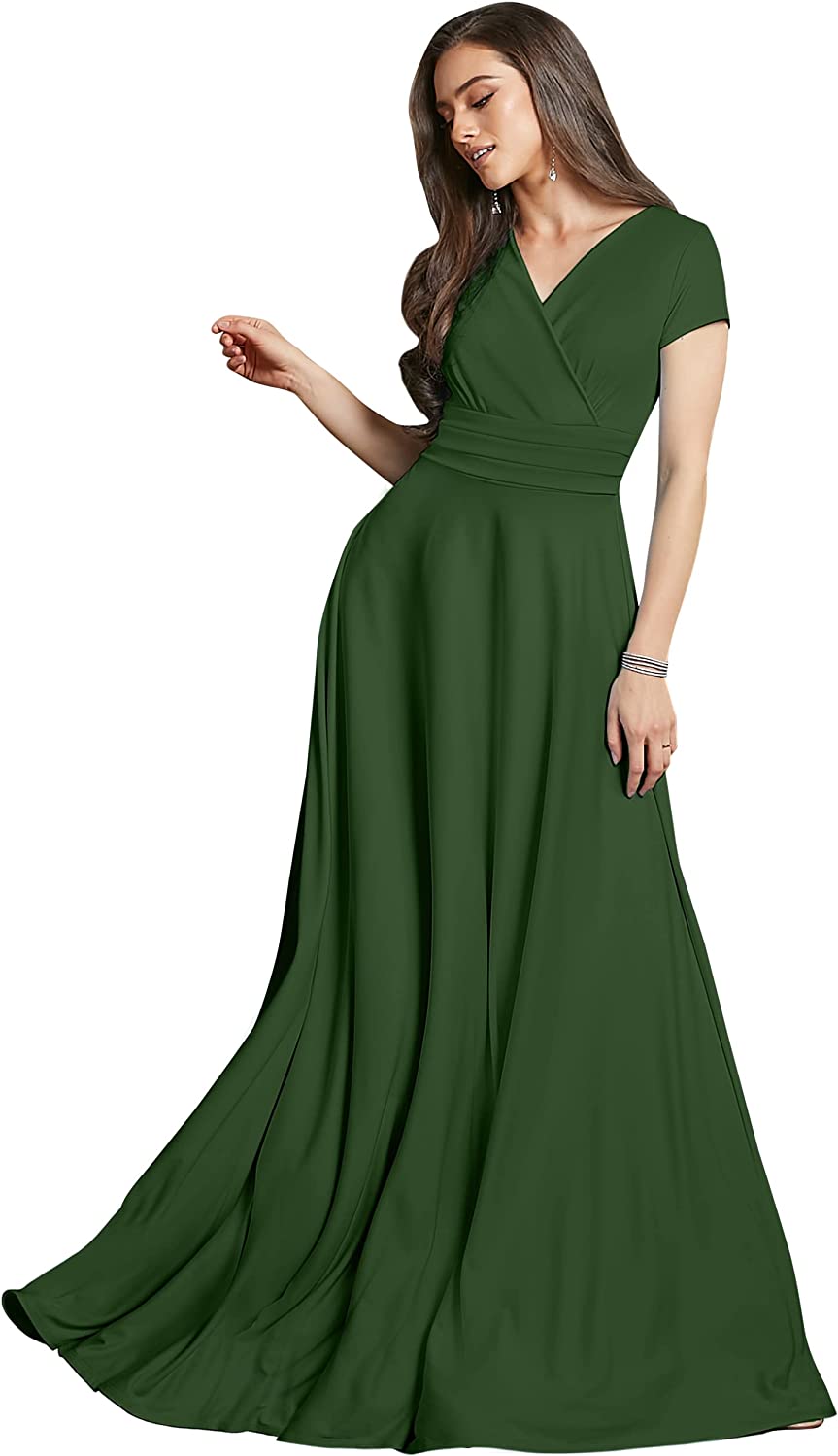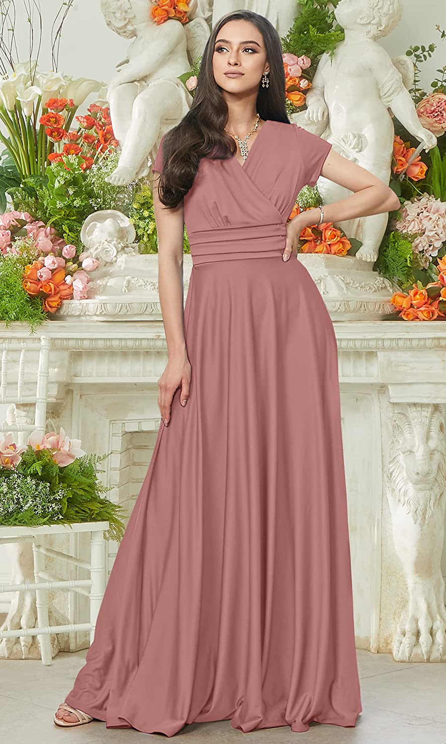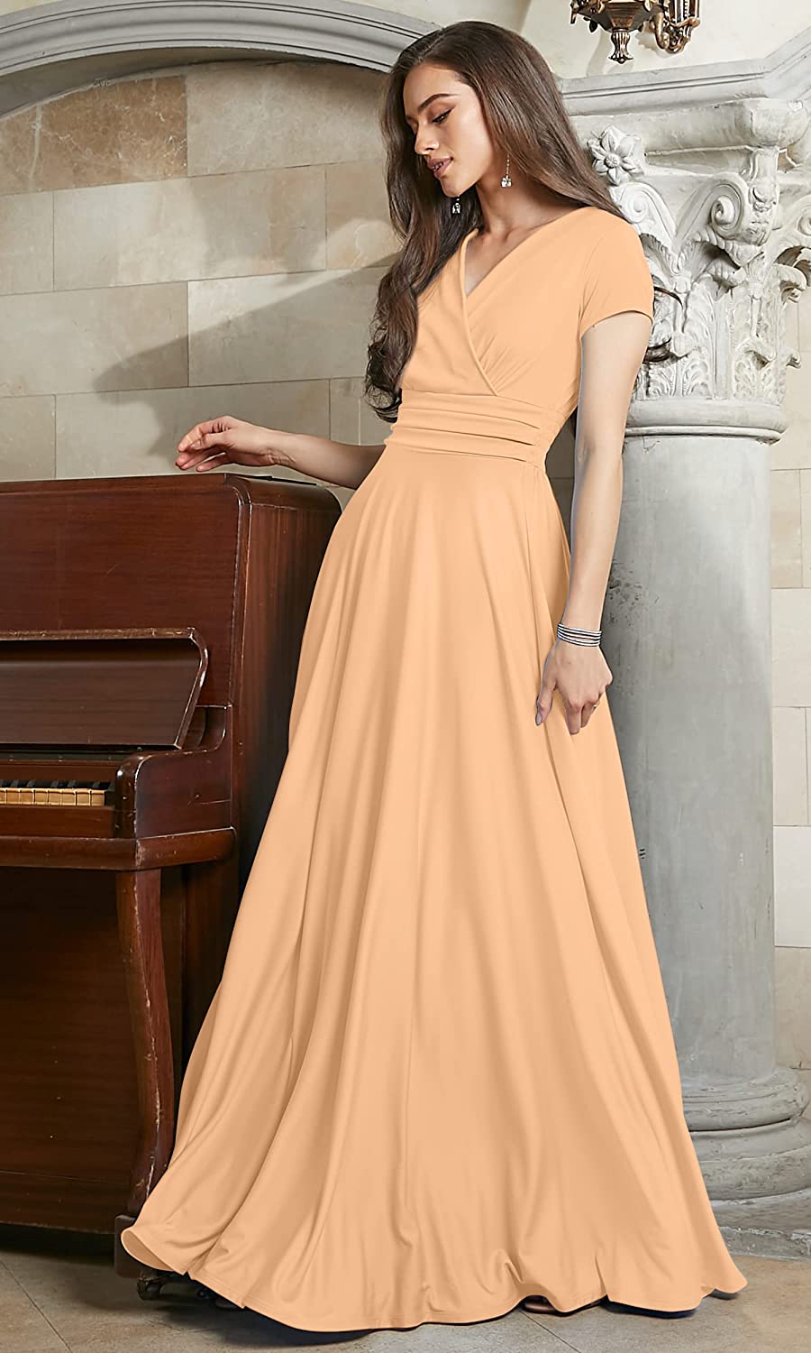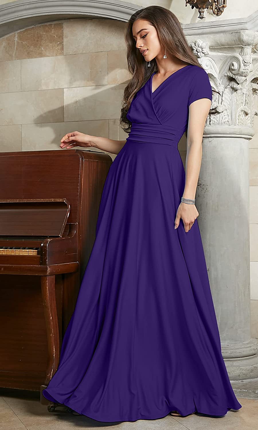 KOH KOH Womens Sexy Cap Short Sleeve V-Neck Flowy Cocktail Gown