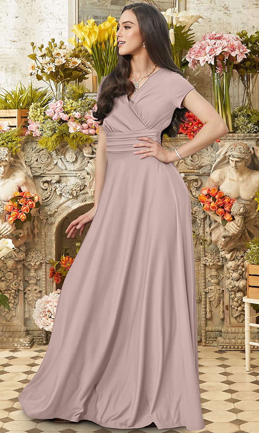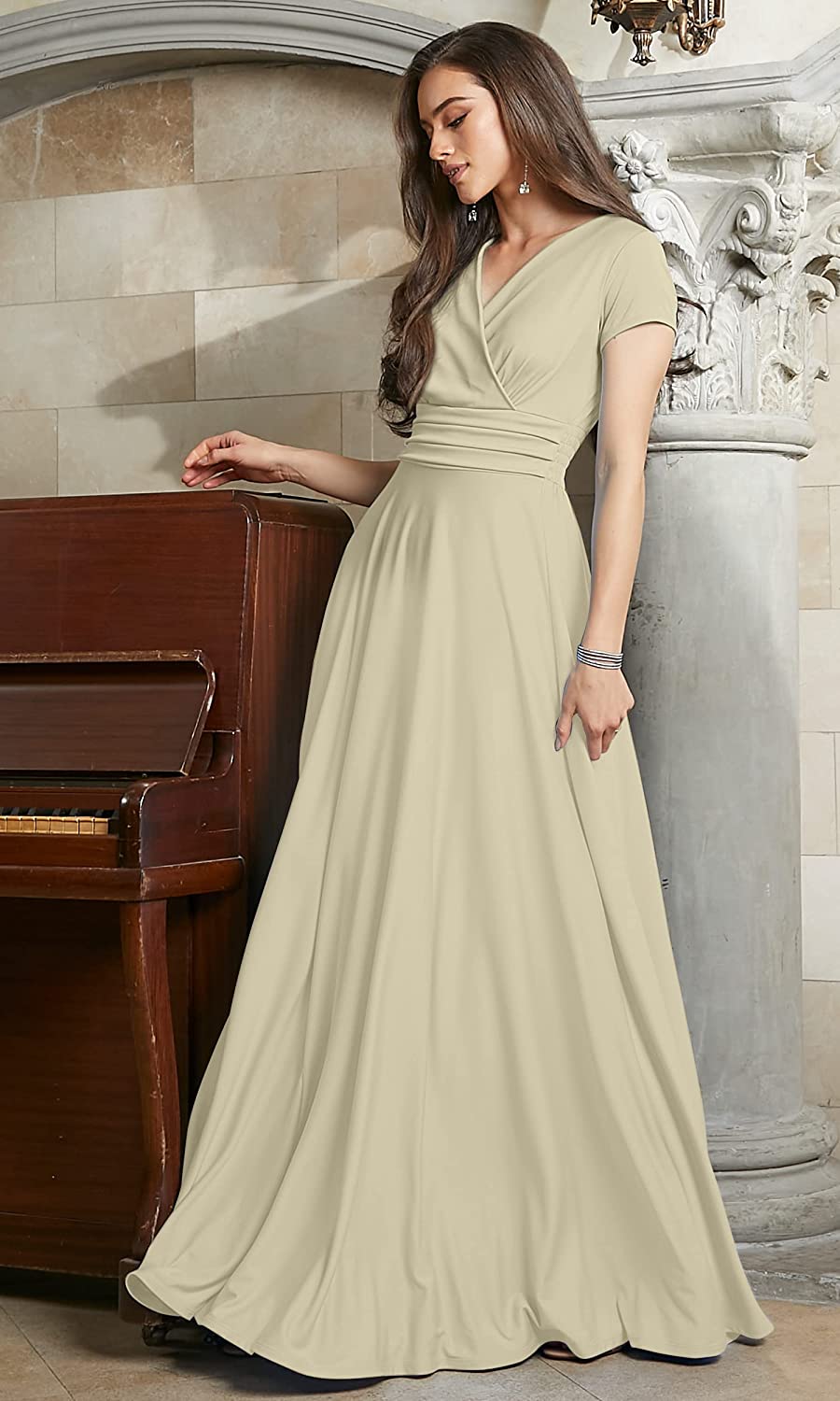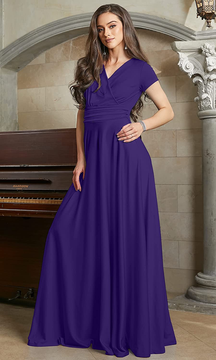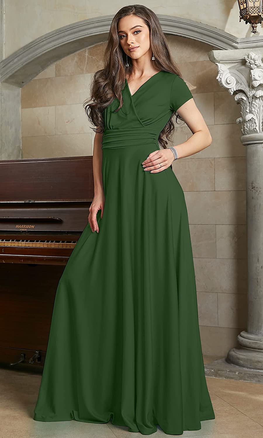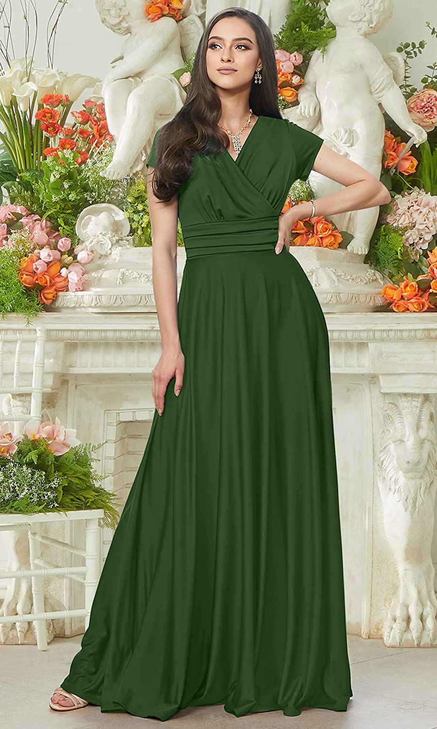 KOH KOH Womens Sexy Cap Short Sleeve V-Neck Flowy Cocktail Gown