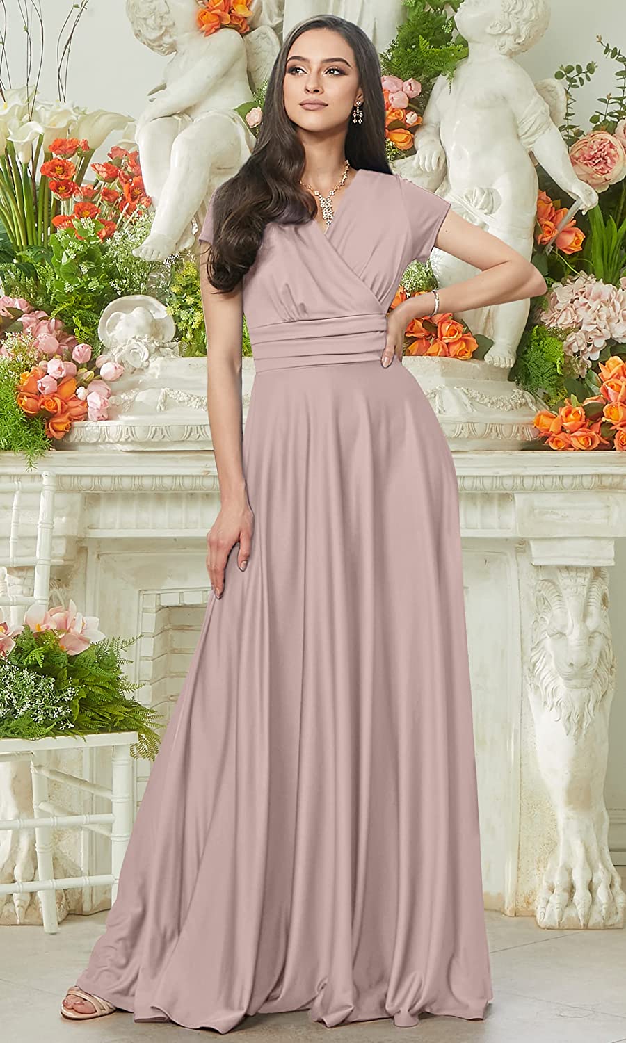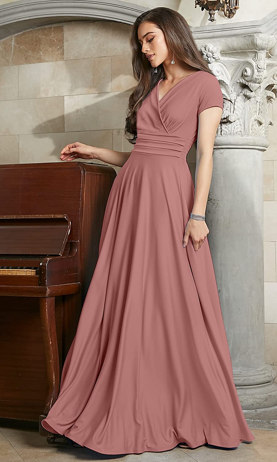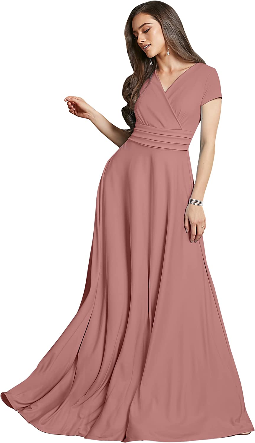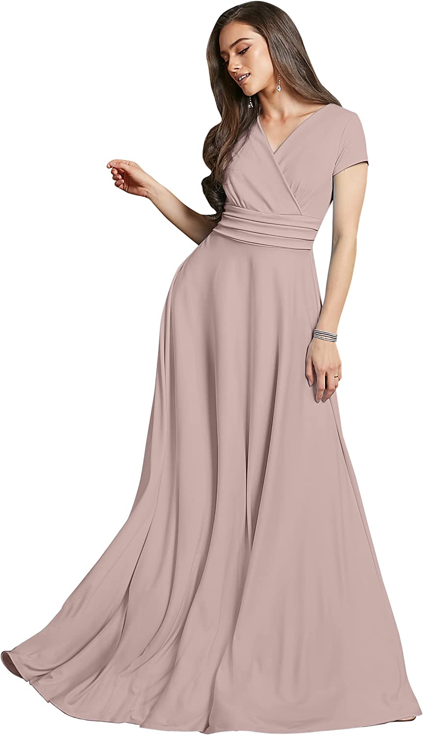 KOH KOH Womens Sexy Cap Short Sleeve V-Neck Flowy Cocktail Gown