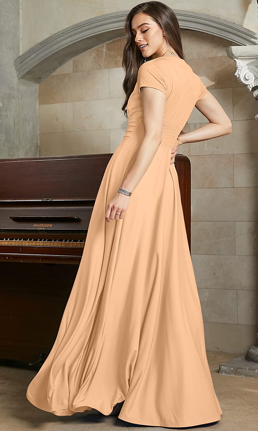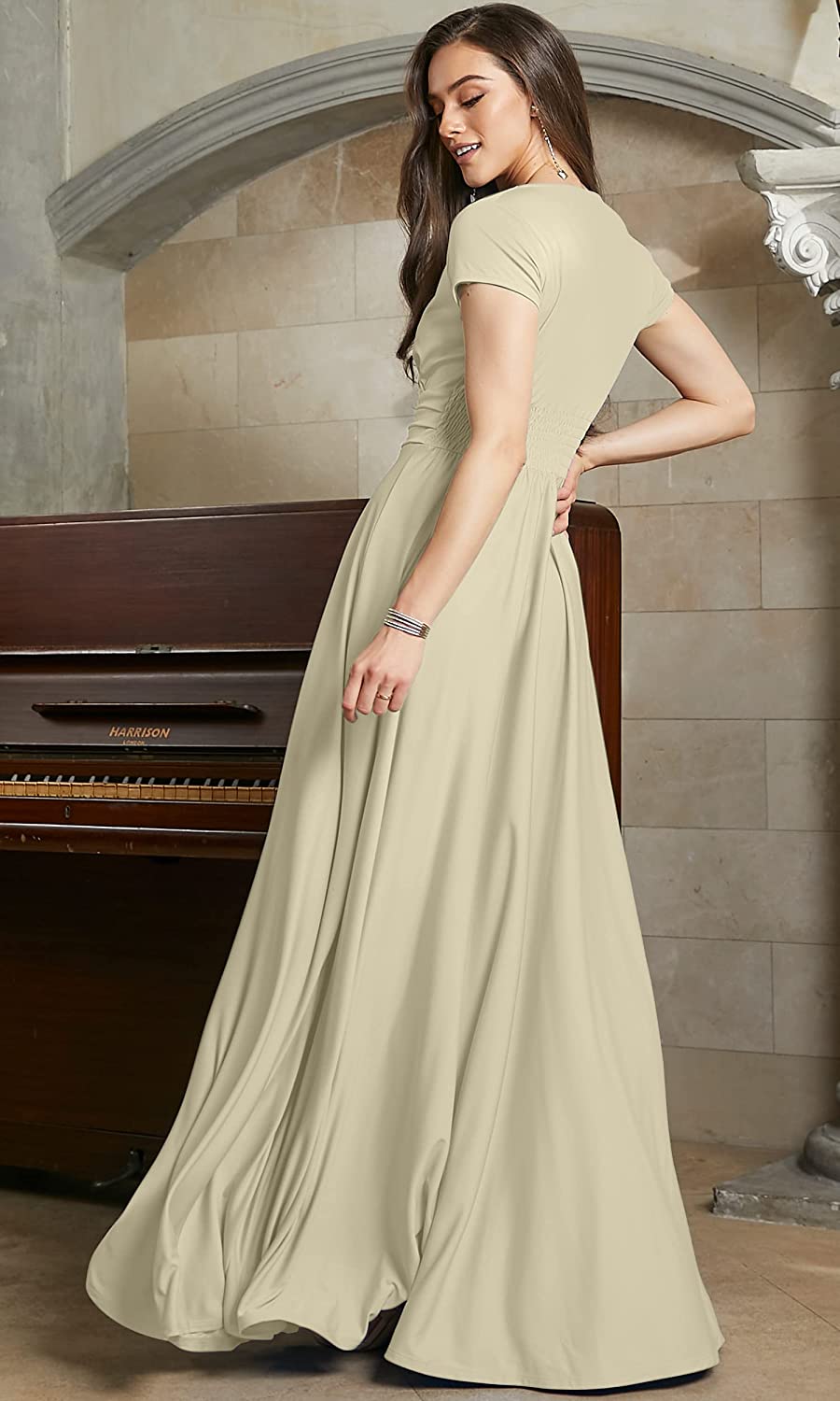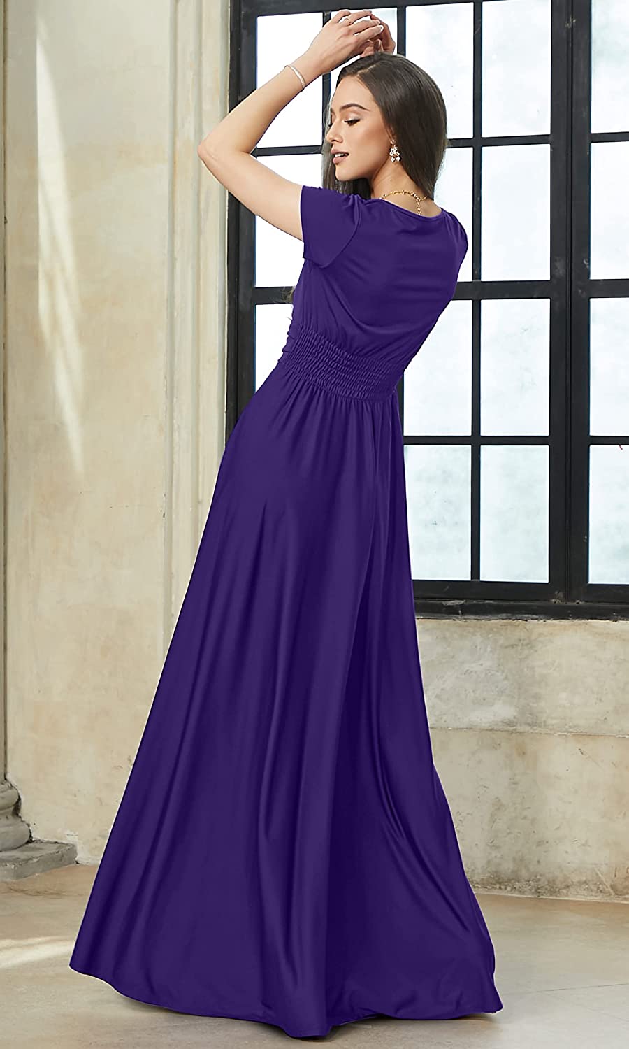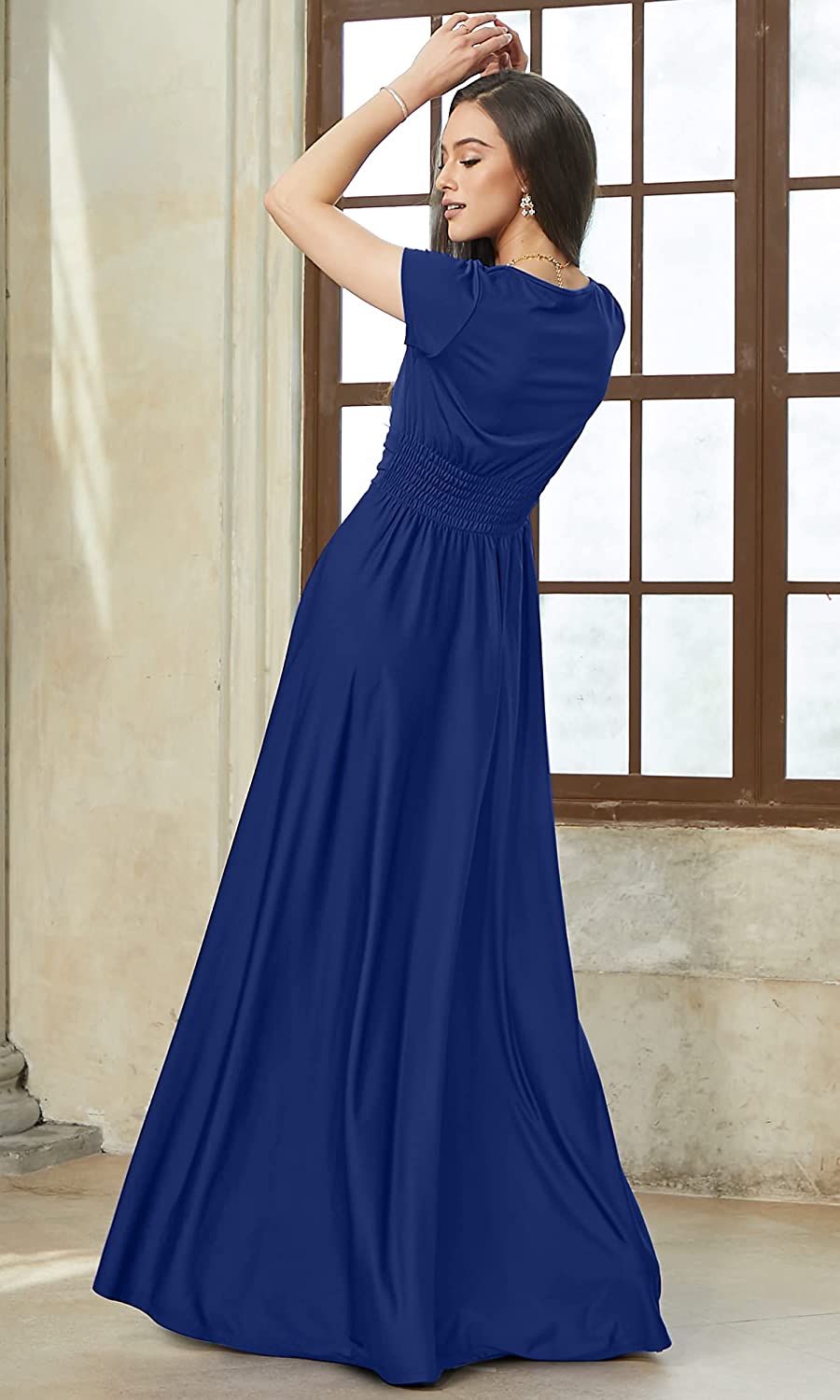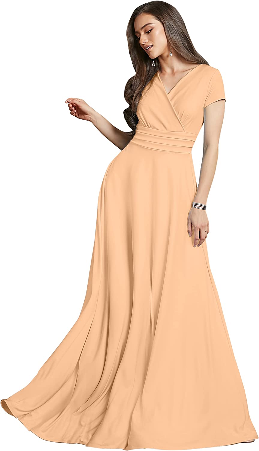 KOH KOH Womens Sexy Cap Short Sleeve V-Neck Flowy Cocktail Gown