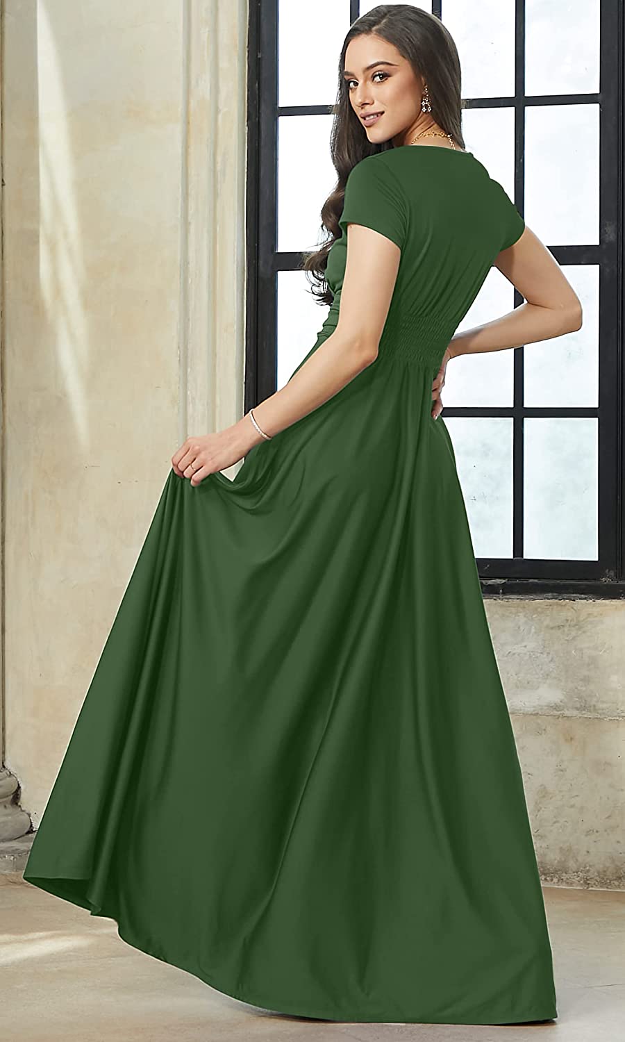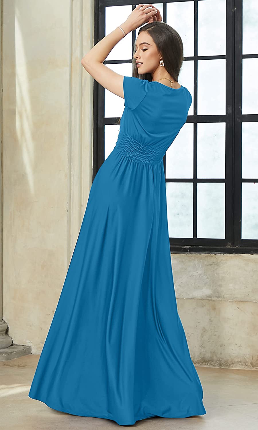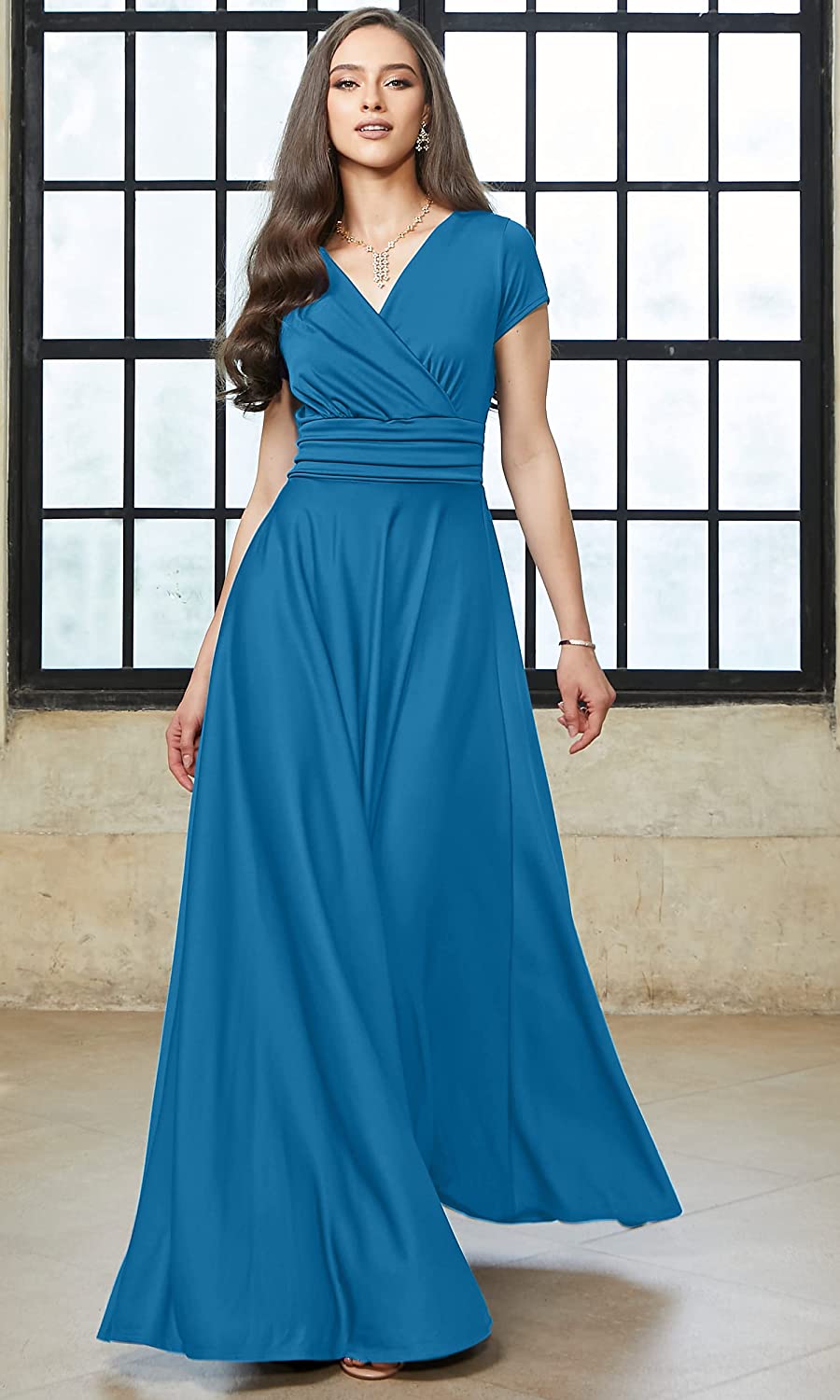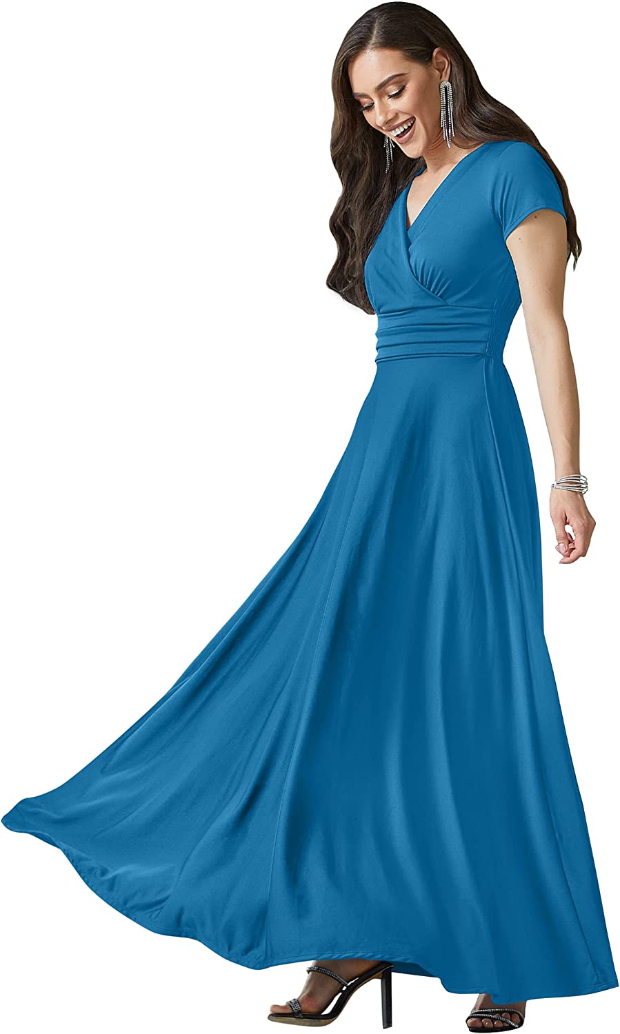 • Short cap sleeve maxi dresses for women ; semi formal Aqua Blue Green evening cocktail gowns; womans empire waist dresses with a flowy maxi skirt; v-neck wrap semi formal evening gowns; ladies elegant casual dresses for work or office