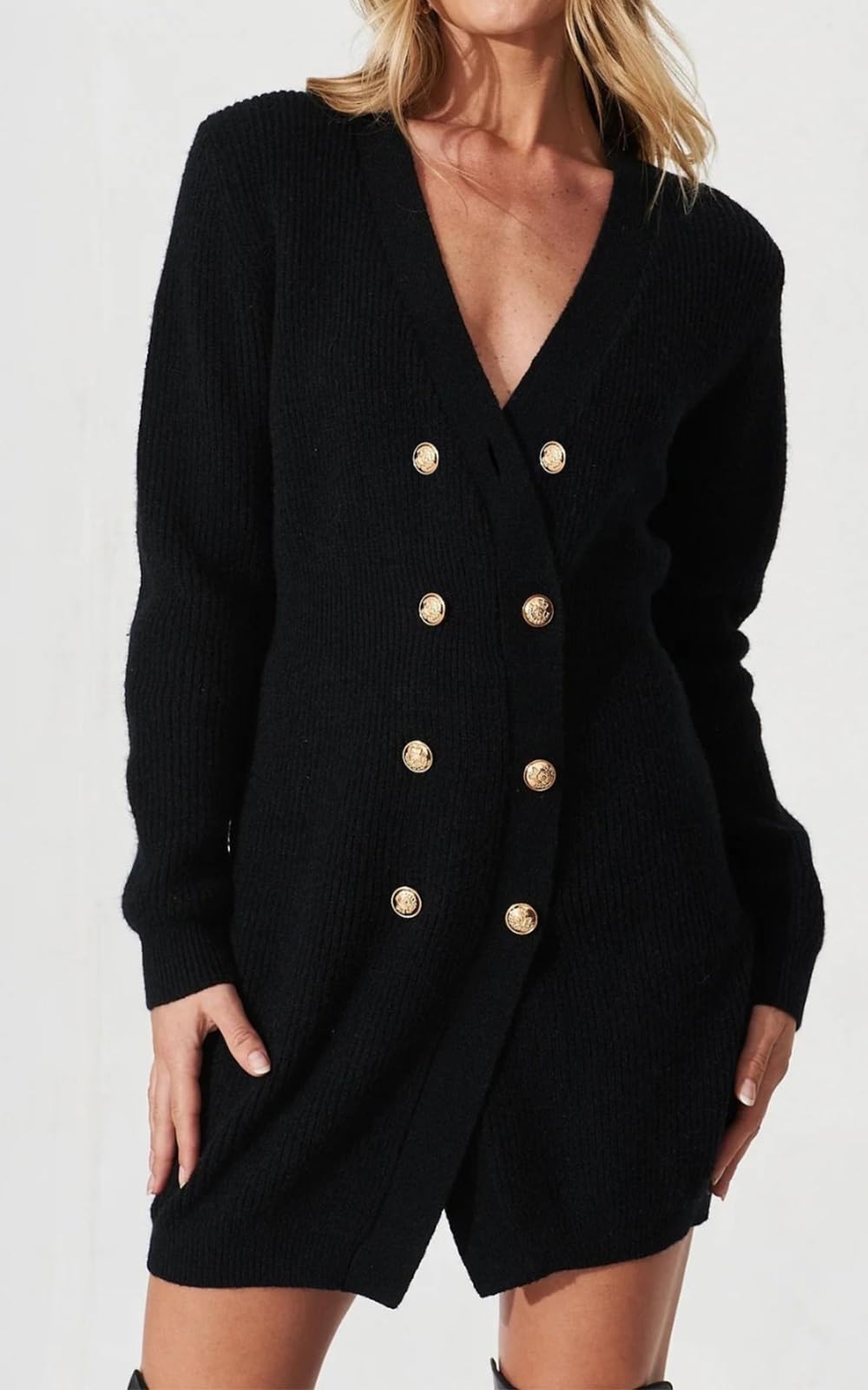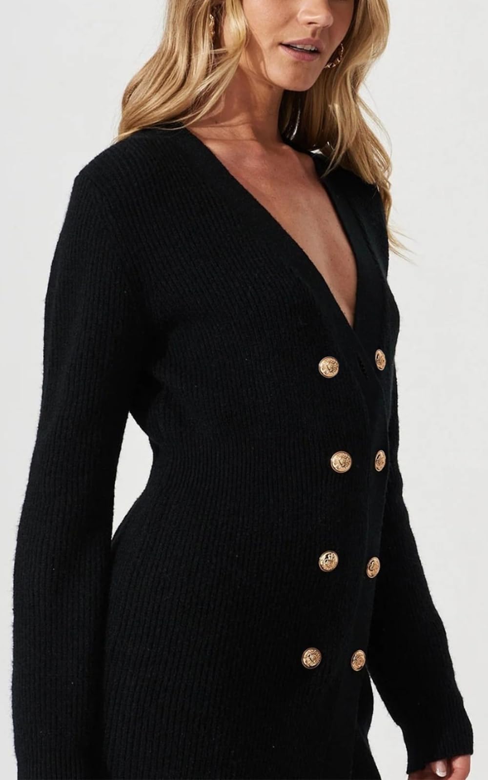 PRETTYGARDEN Women's 2023 Fall Knit Pullover Sweaters Long Sleeve Button Down Long Cardigans Ribbed Knit Sweater Dress (Black,Medium)