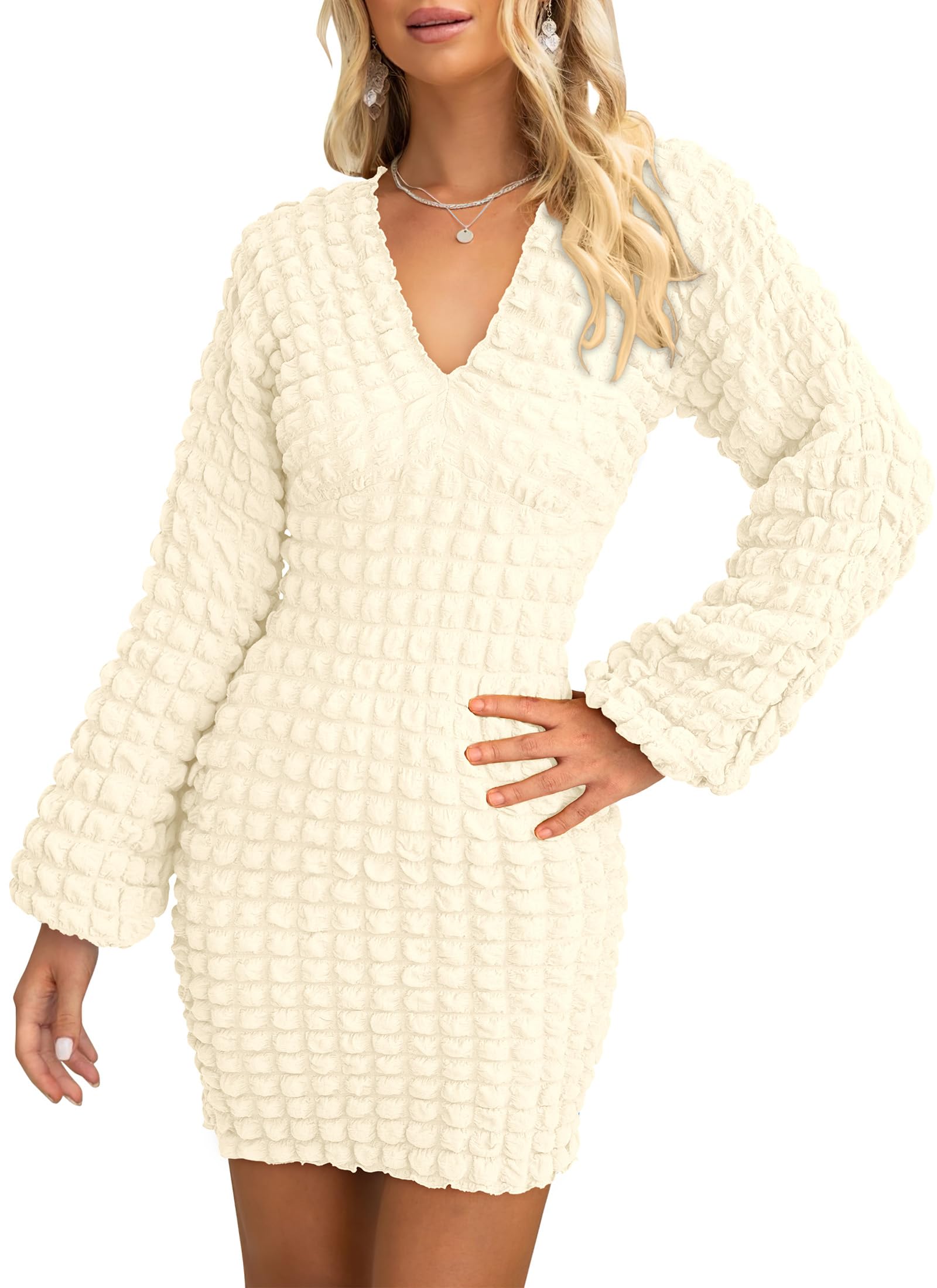 • EYE-CATCHING DESIGNS: Long Sleeve Dress For Women/ Puffy Sleeve Dress/ Mini Dress For Women Sexy/ Short Dress For Women Casual/ Bodycon Dress/ Tight Dress For Women/ Womens Pencil Dresses/ V Neck Dress/ Dresses For Curvy Women