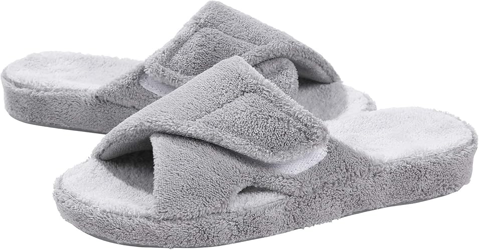 shevalues Summer Arch Support Slippers for Women Adjustable Terry Cloth Fuzzy Indoor Slippers Open Toe House Shoes