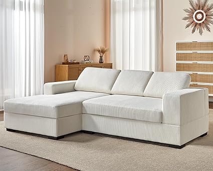 AMERLIFE 96 inch Oversized Sectional Sofa, Modern Couch with Chaise, Comfy Sofa Couch with Left Chaise, White Corduroy Sofa