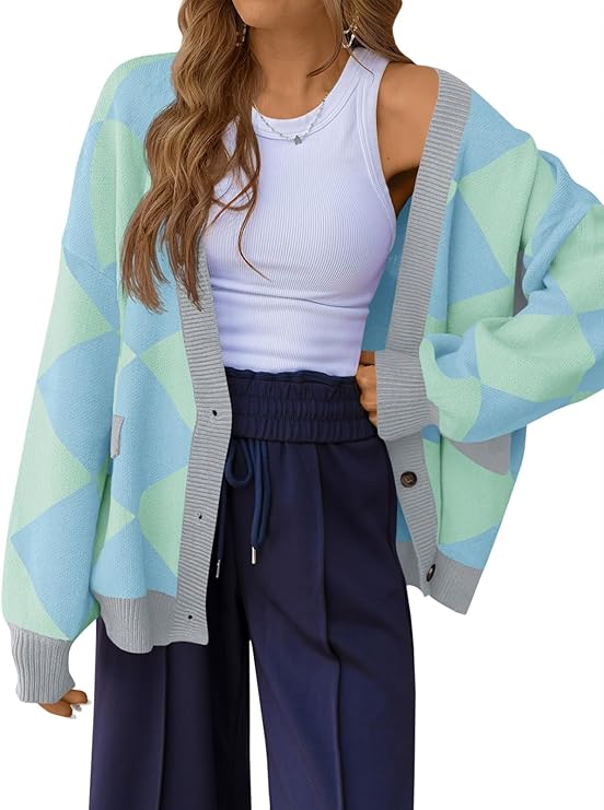Saodimallsu Womens Checkered Oversized Cardigan Sweaters V Neck Button Down Long Sleeve Slouchy Knit Jacket Coats