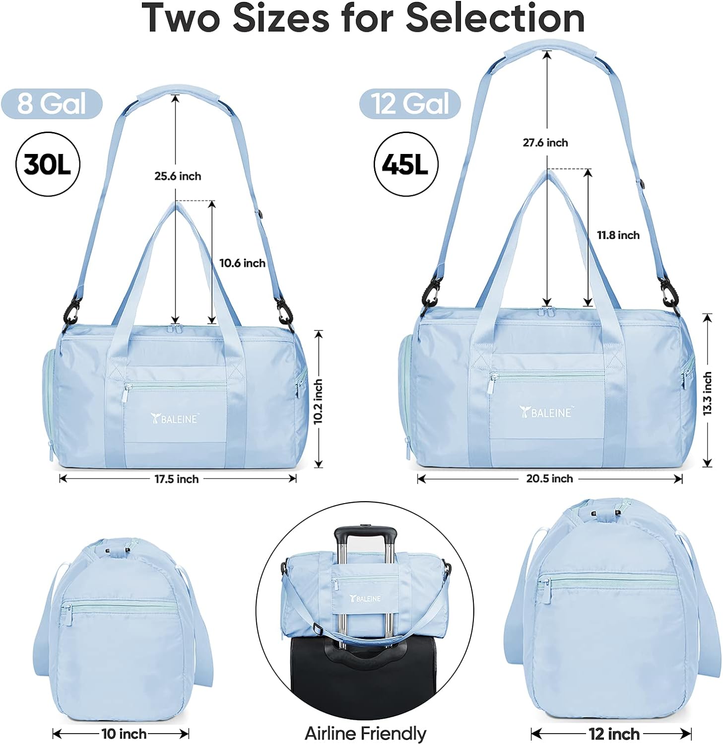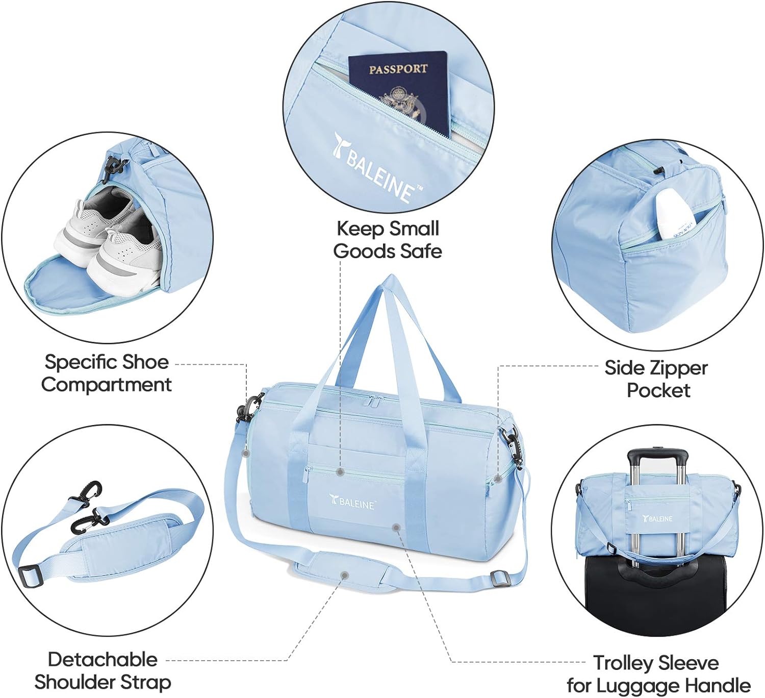 BALEINE Gym Bag for Women and Men, Duffel Bag for Sports, Gyms and Weekend Getaway, Waterproof Dufflebag with Shoe and Wet Clothes Compartments, Lightweight Carryon Gymbag (Azure)