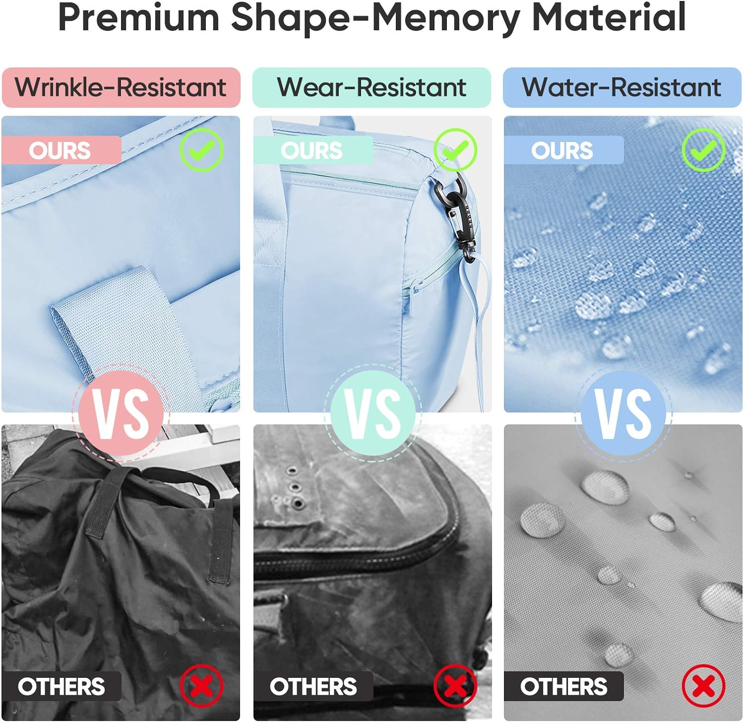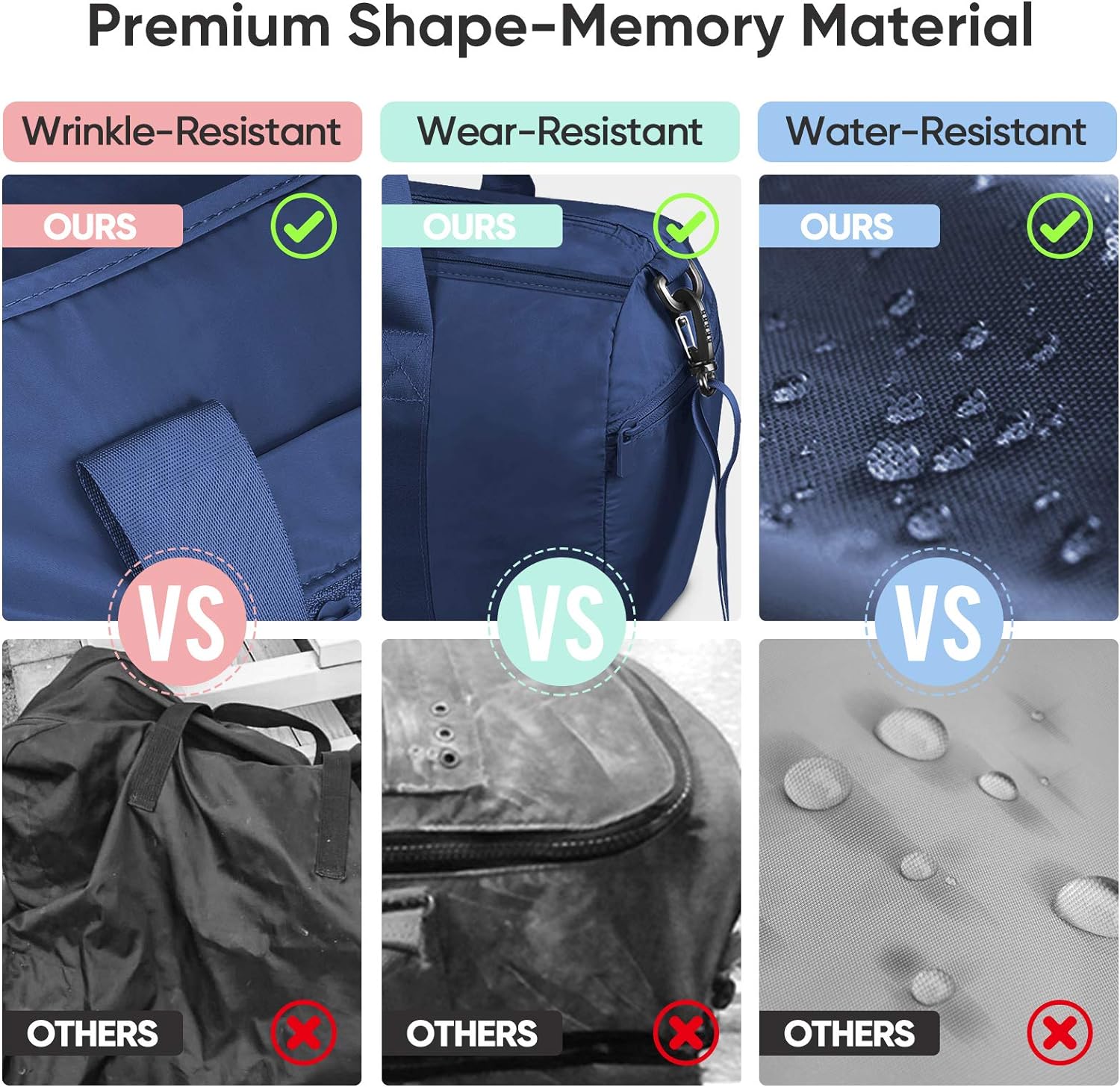 • [LIGHTWEIGHT & WATER PROOF DUFFLE BAG] Our duffle bags are made with 302T Twill Fabric. They are soft, washable, waterproof, wrinkle-free, and wear-resistant. Waterproof exterior keeps your clothes and items dry; it can be used both indoor and outdoor. Duffelbag with handles, and removable shoulder strap with adjustable buckle.