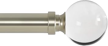 Ivilon Drapery Treatment Window Curtain Rod - Acrylic Ball 1 inch Pole. 120 to 240 Inch. Satin Nickel