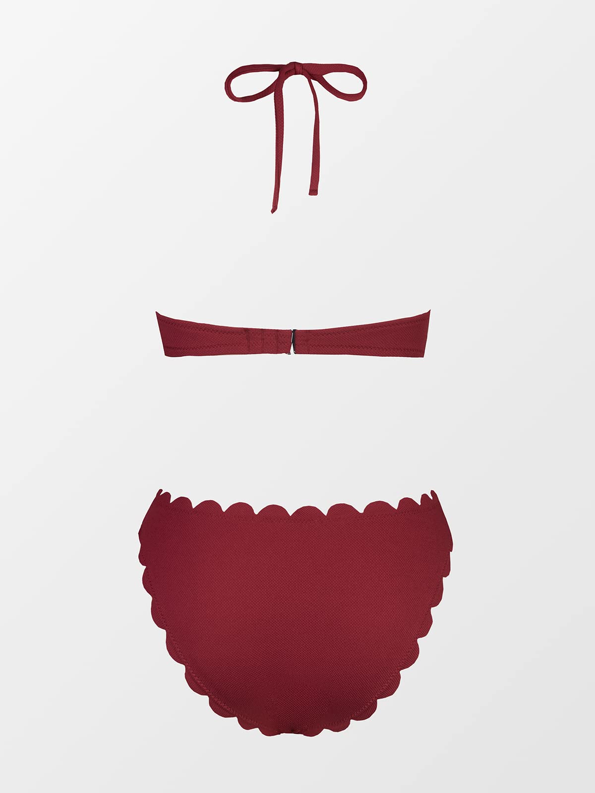 CUPSHE Bikini Set for Women Two Piece Swimsuit Scalloped Halter Cutout Front Back Hook Low Waist Bottom L, Burgundy