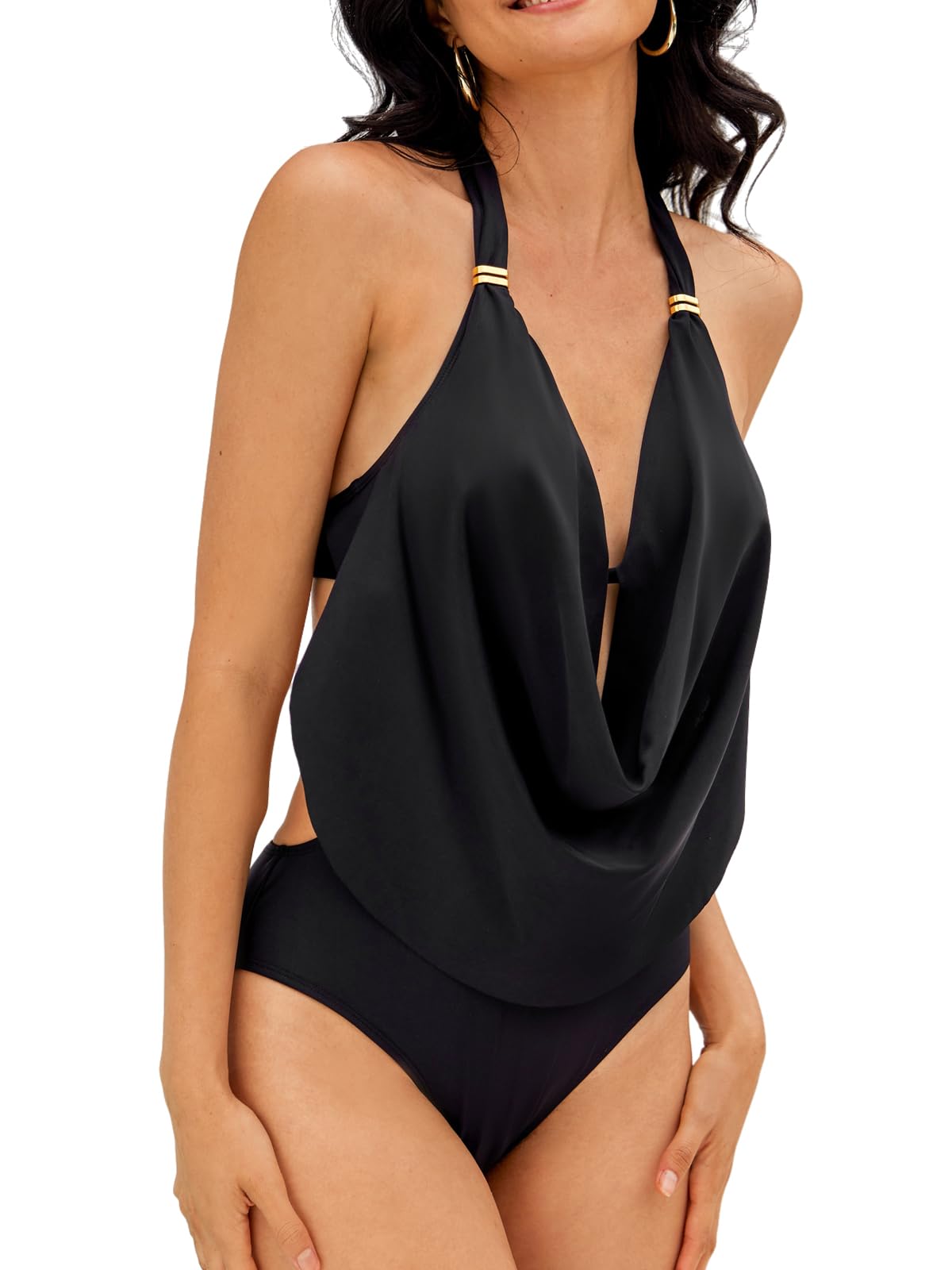 • Design: This Halter One Piece Swimsuits Features Plunging Draped Neck and Cutout Design Make You Flattering. The Bathing Suits Design with Back Self Tie and Low Rise Can Make You Feel Comfortable.