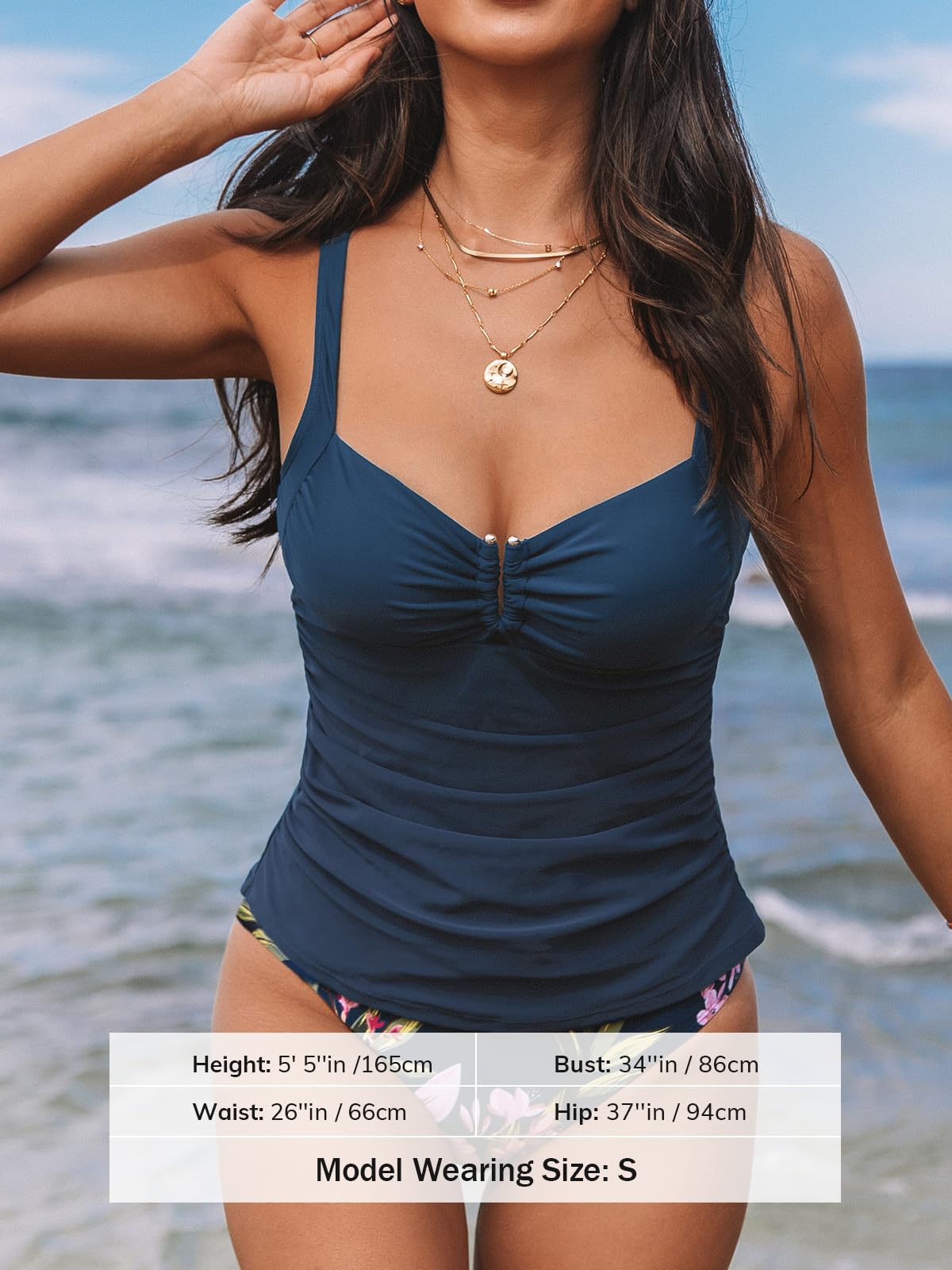 • Design: The Tankini Sets Feature Wide Adjustable Straps and Ruched Details. The Sweetheart Neck with Front U Wire Keyhole Offers a Touch of Elegance, and High Waisted Bottoms Provide a Comfort Fit. About Cup Style: Medium Bust Support. With Removable Soft Cups.