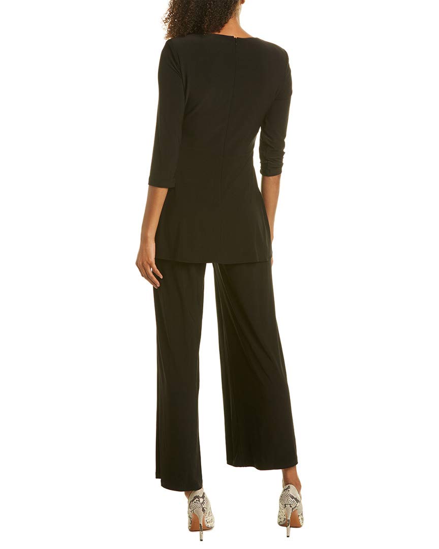 Details: This matte jersey jumpsuit features a long sleeve, draped knot on center front, and slim pant.