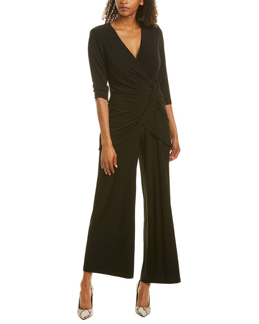 Adrianna Papell Women's Jersey Long Sleeve Jumpsuit, Black, 4