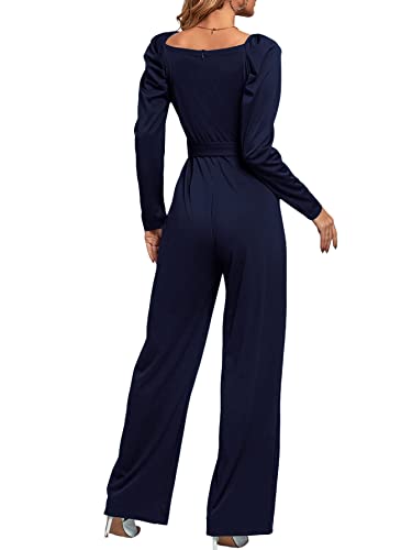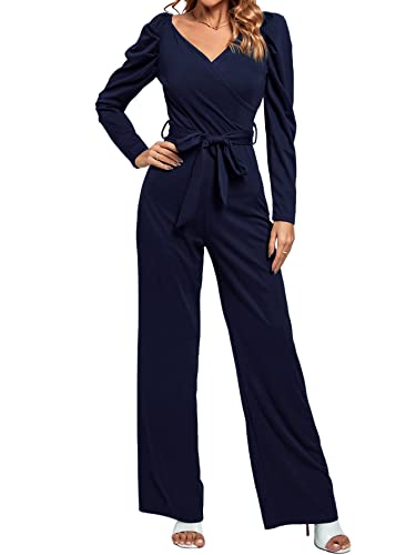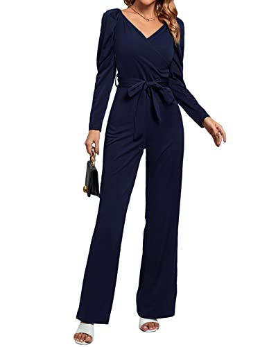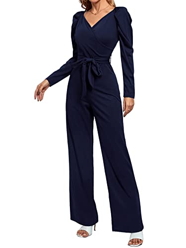 LYANER Women's One Piece Outfit Long Sleeve Wrap V Neck Blazer Jumpsuit Long Romper Navy Blue Large