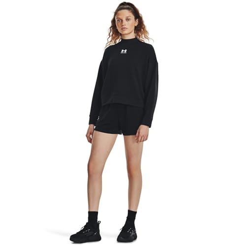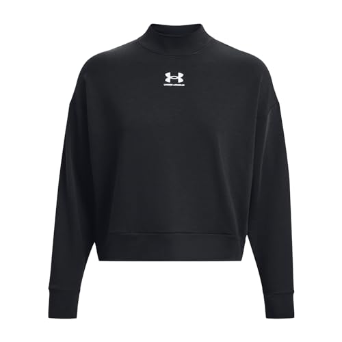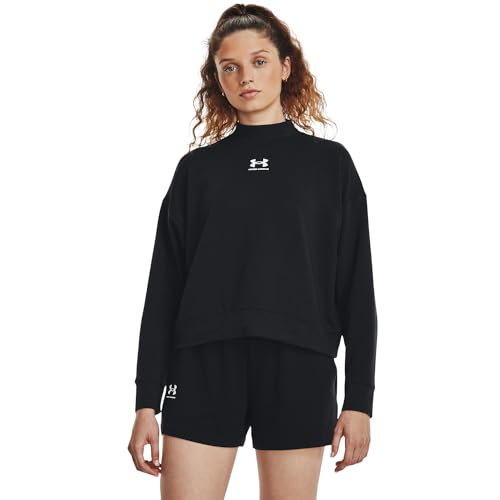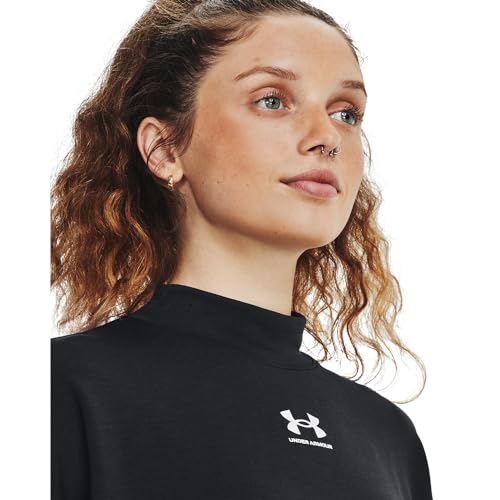 Under Armour Women's Standard Rival Terry Mock Neck Crew, (001) Black / / White, Large