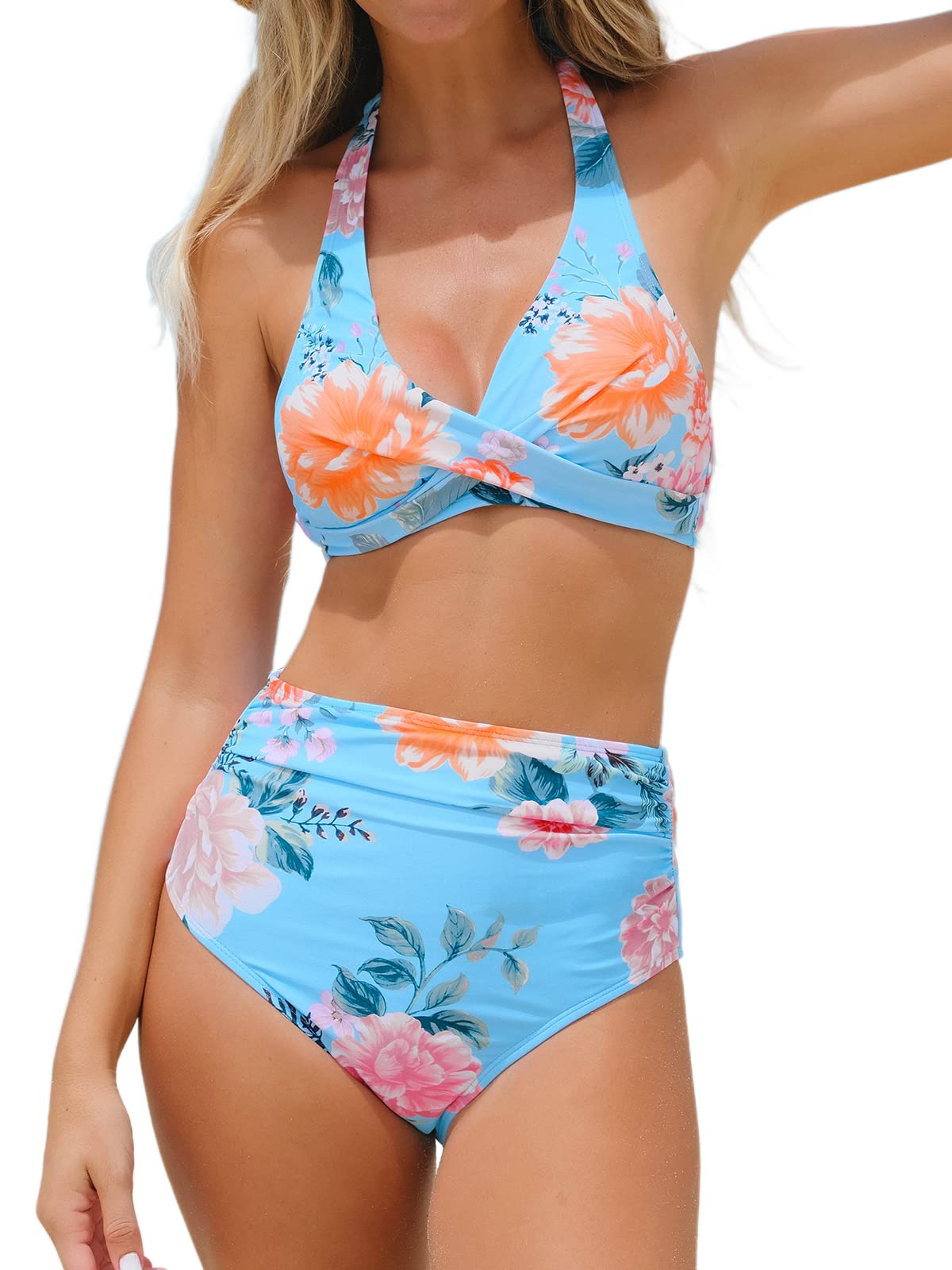 • Design: This Halter Bikini Sets Design with Twist on front Top. The Lovely Two Piece Swimsuits with Floral Print and High Waisted Bottom, Back Self Tie Can Catch Everyone's on the Beach. About Cup Style: With Removable Soft Cups.