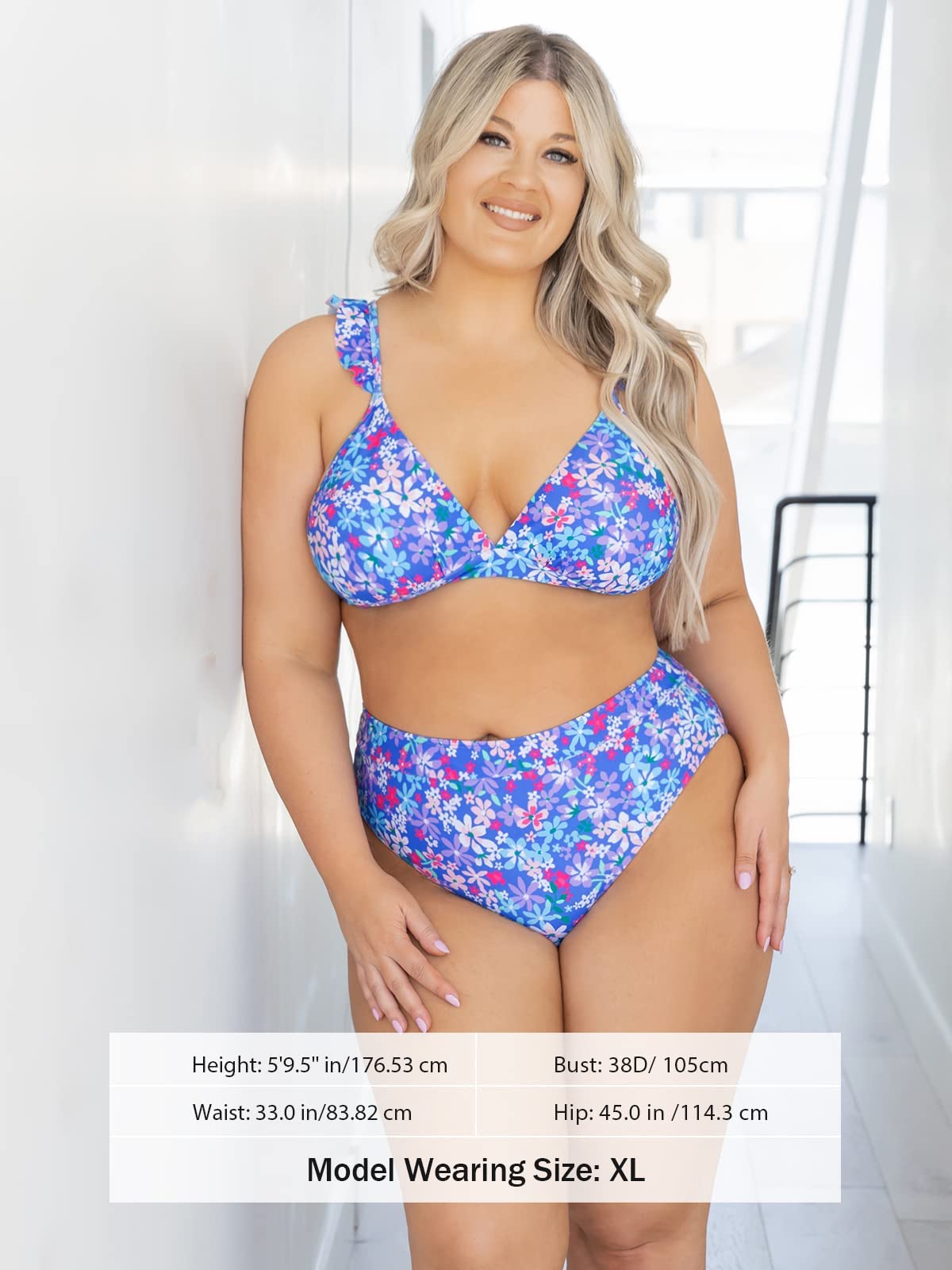 • Design: This Women Two Piece Swimsuit Floral Bikini Sets Features Deep V Neck and Ruffle Design, with the High Waist Bottom