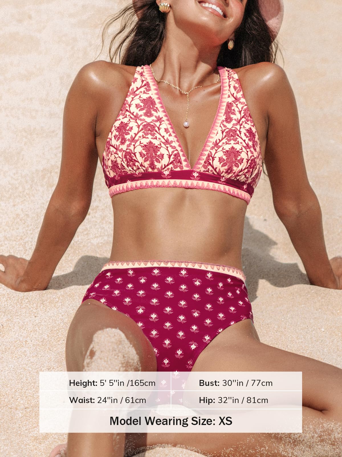 • Design: The Stylish Two Piece Swimsuit Features Crisscross Back Tie and Plunging Neck Design Can Make You Flattering. This High Waisted Bikini Sets with Ethnic Pattern Can Catch Everyone's on the Beach.About Cup Style: With Removable Soft Cups.