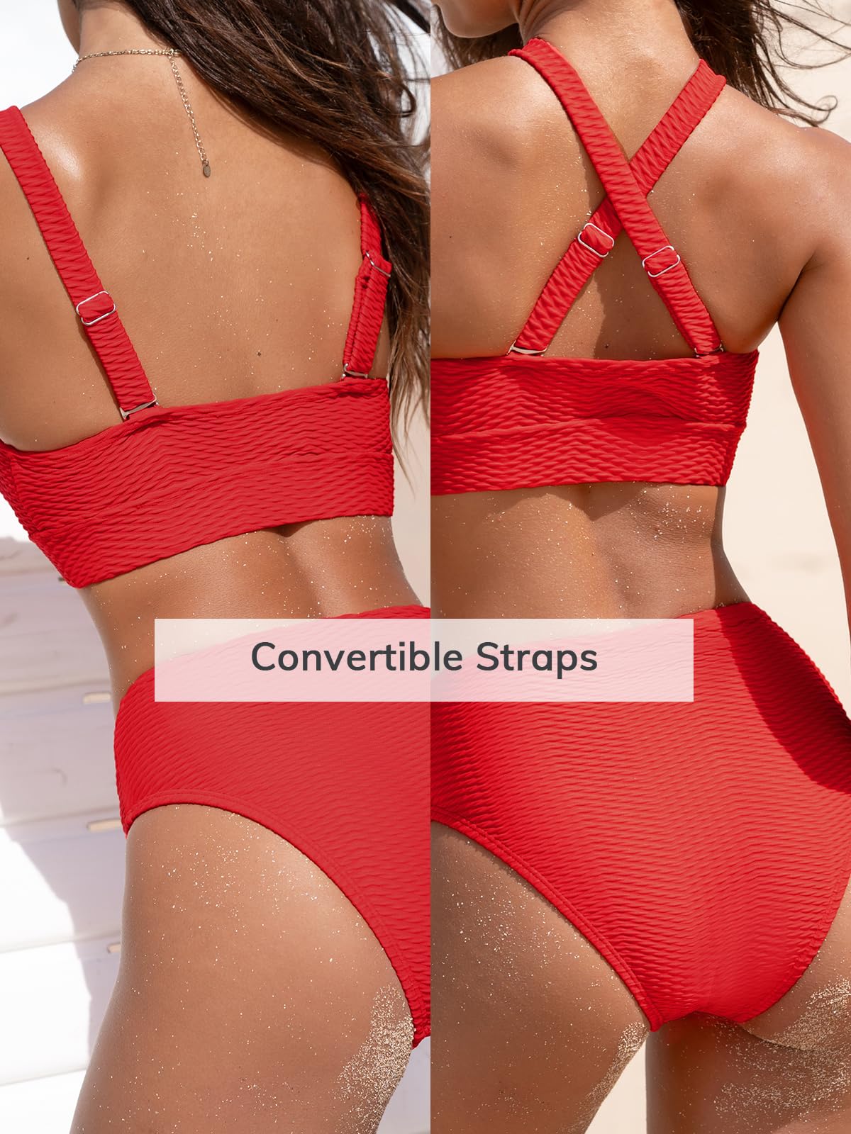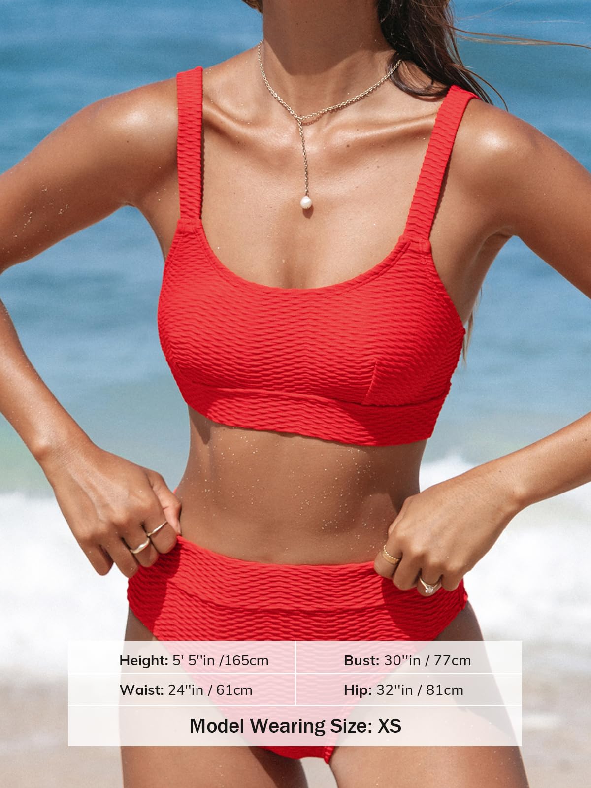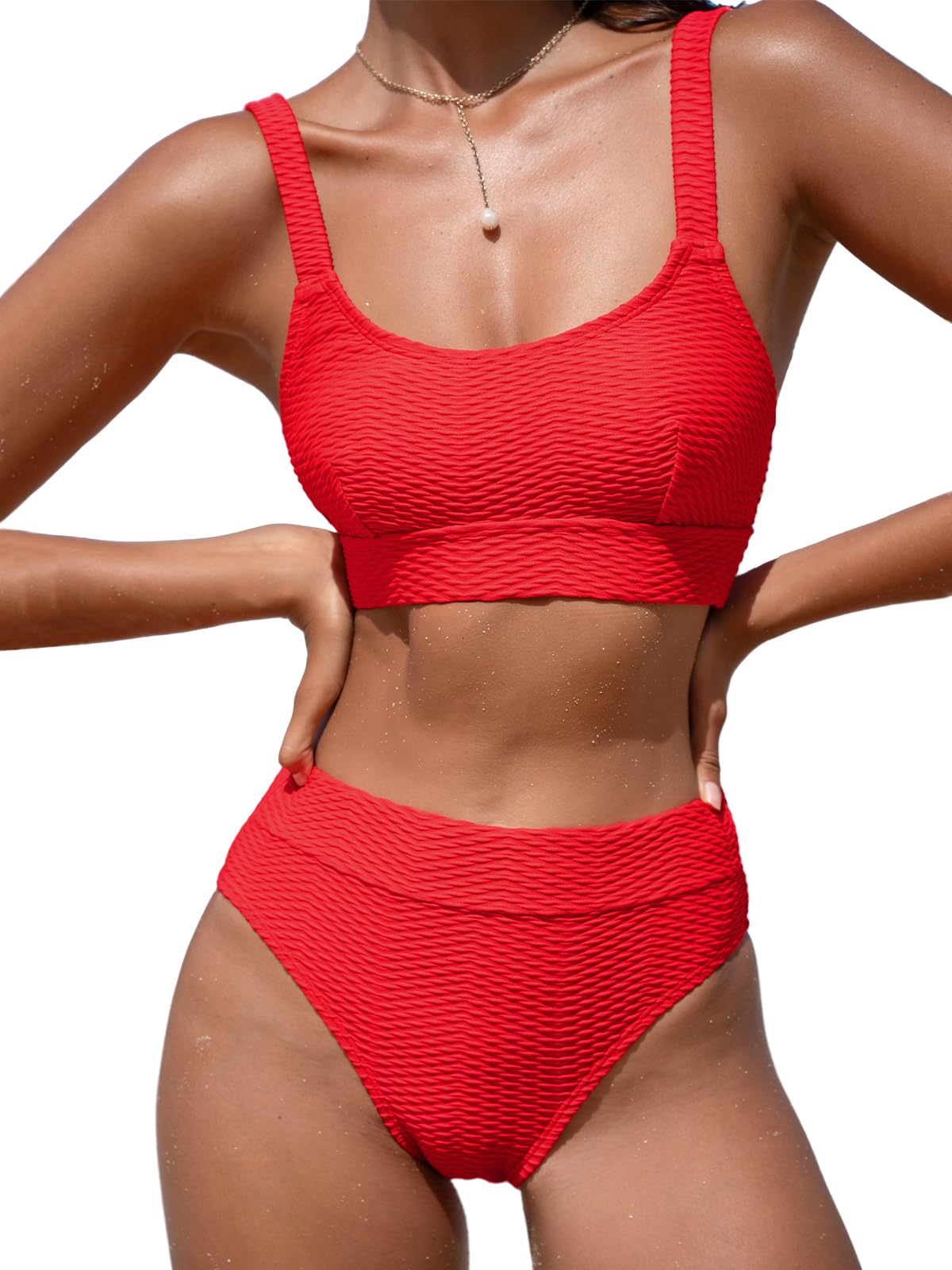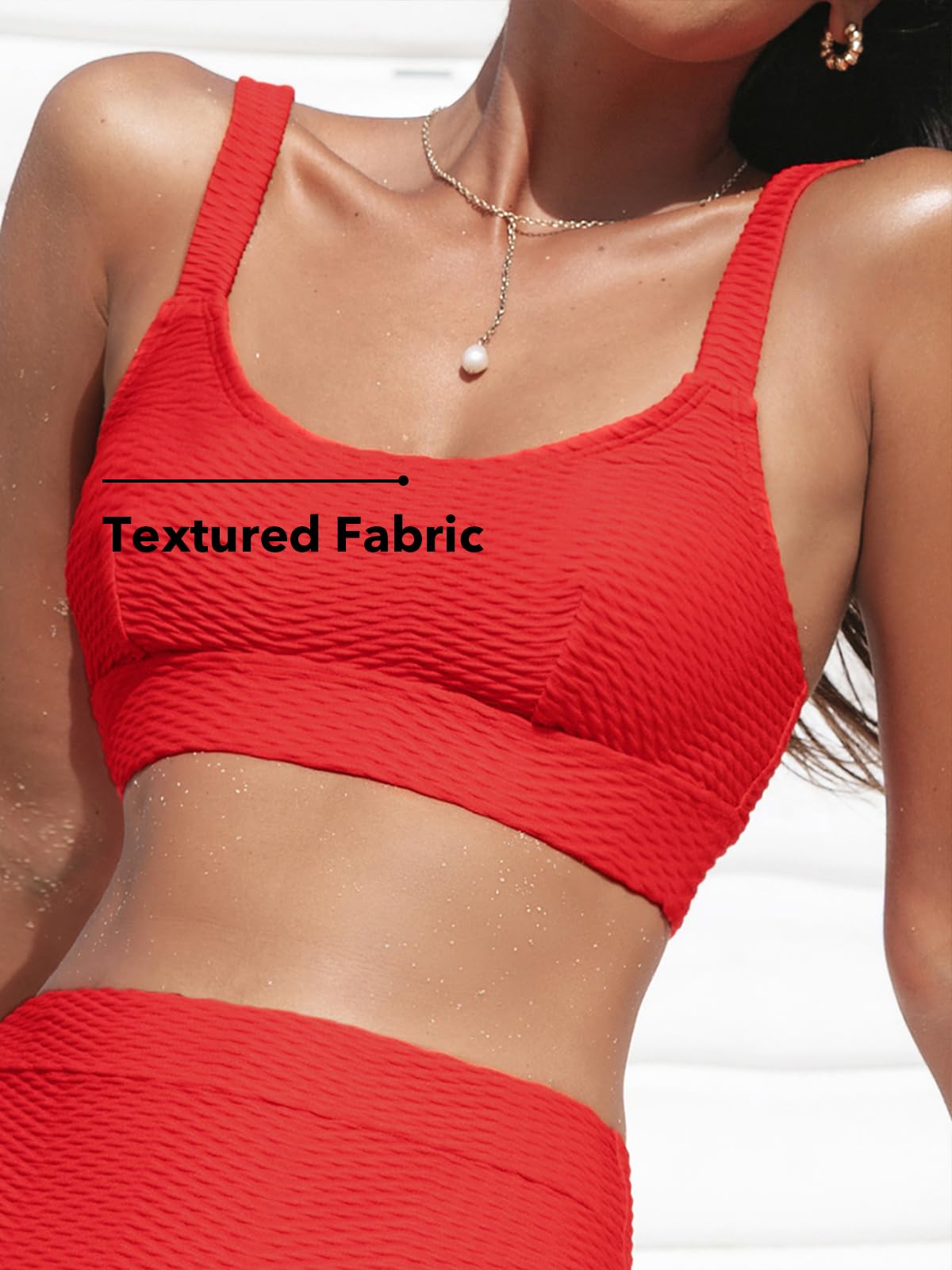 • Design: This Bikini Set Features a Flattering Scoop Neck and Comfy Mid Rise. The Textured Detailing Exudes Elegance, and the Wide Adjustable Straps Easily Convert to a Crisscross Back for a Perfect Blend of Style and Function.